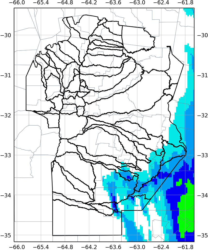 Precipitaciónes acumuladas cuencas entre las 12hs del 05-04-2025 y las 12hs del 06-04-2025