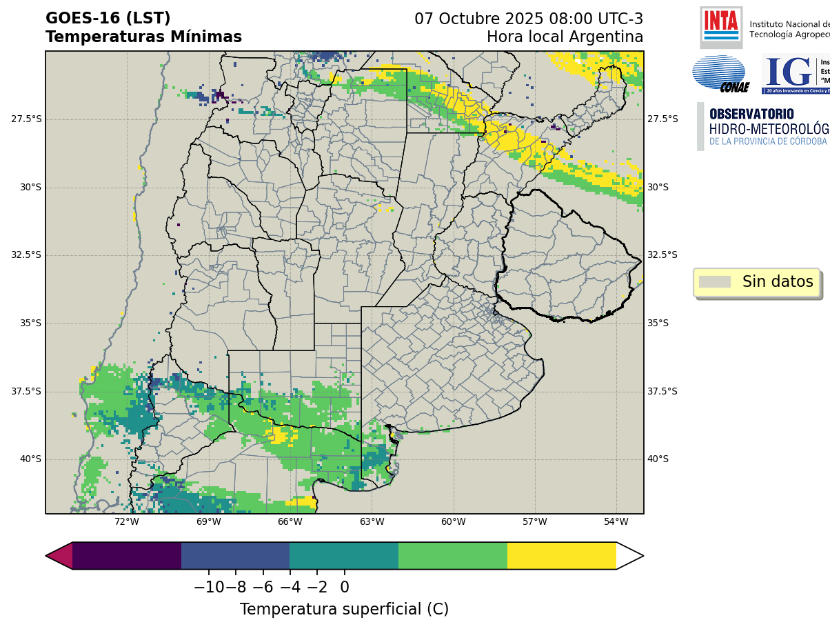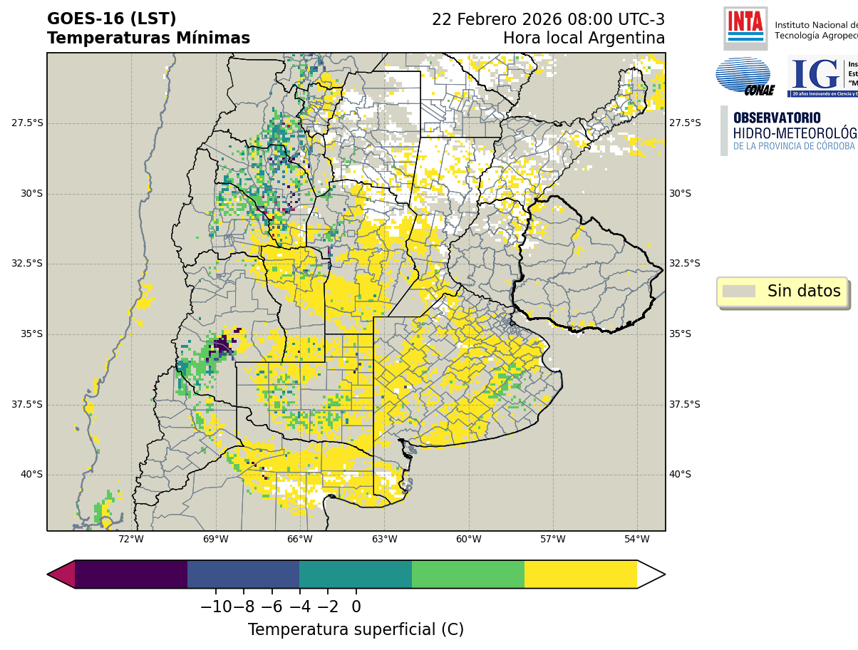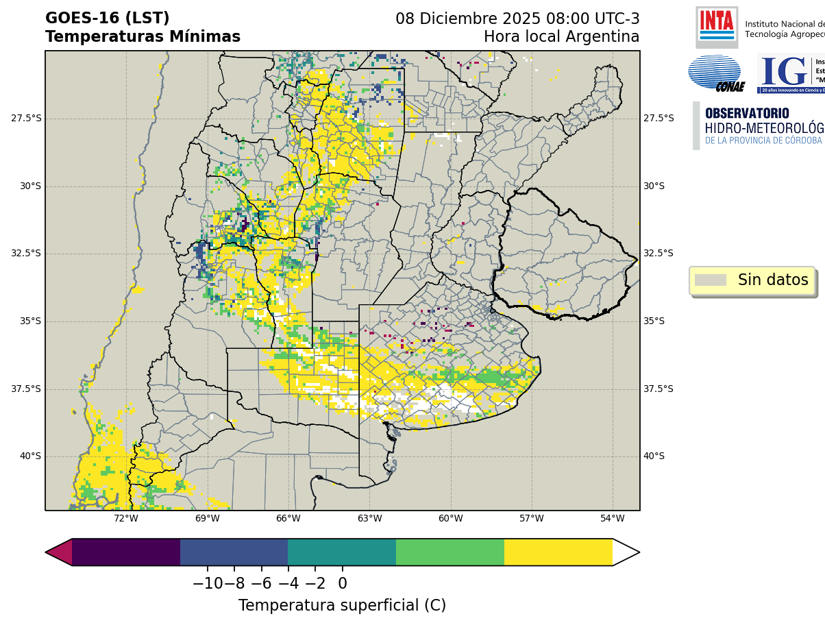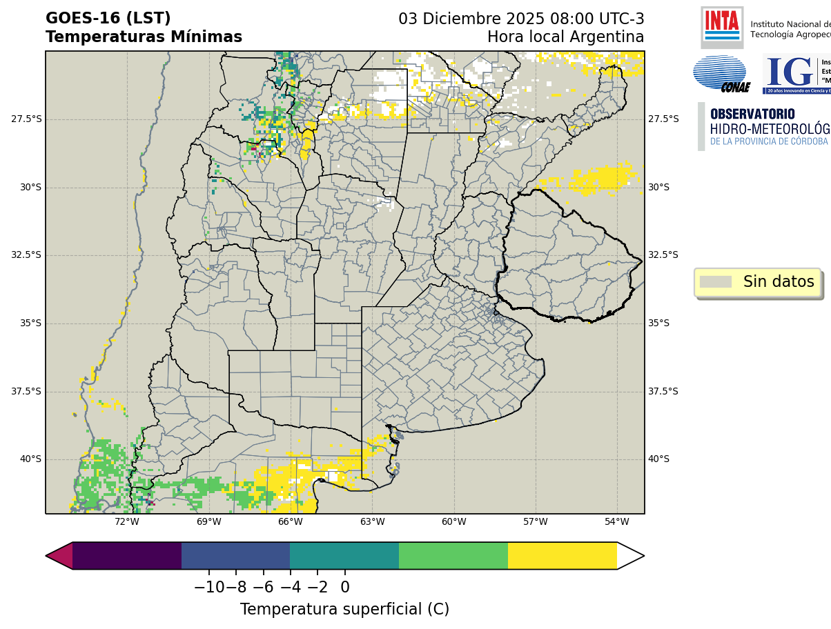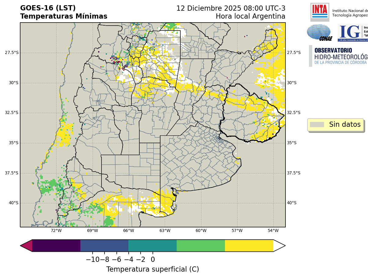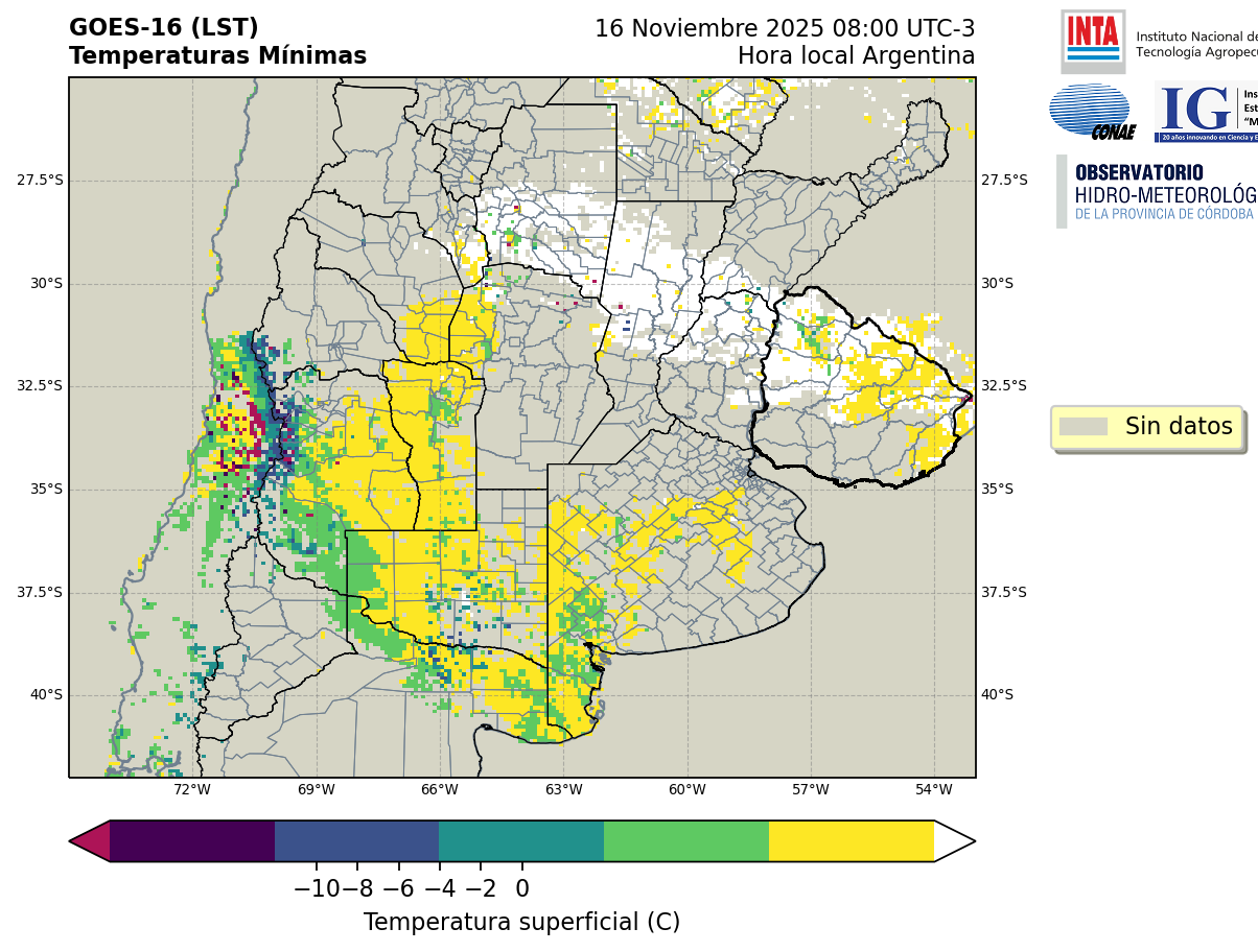 GOES 16 ABI Temperaturas Mínimas - Temperaturas Mínimas