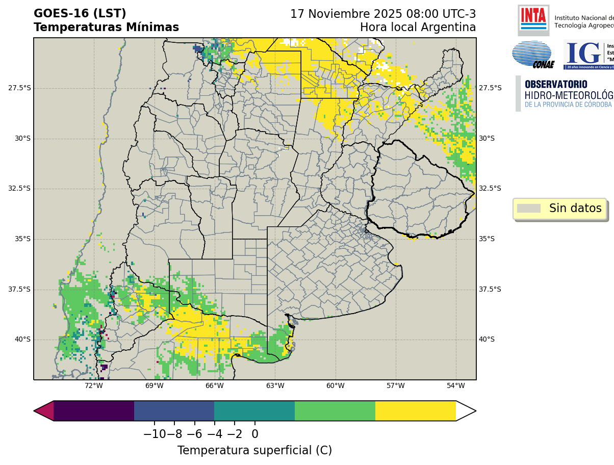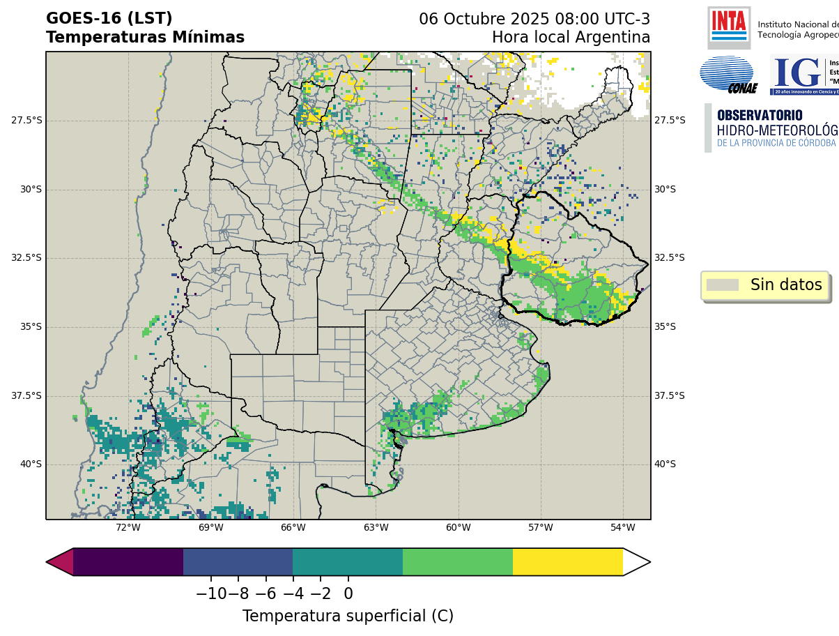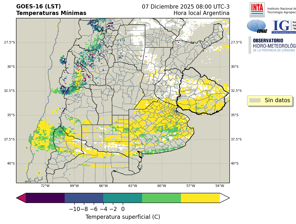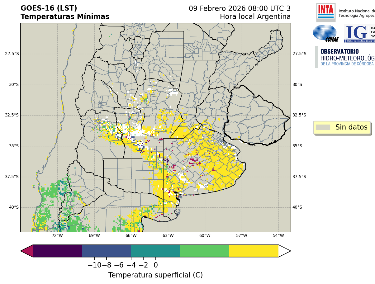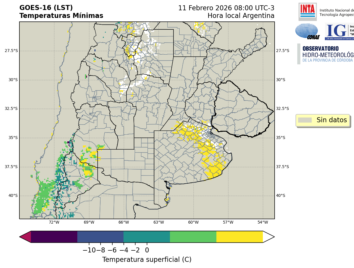 GOES 16 ABI Temperaturas Mínimas - Temperaturas Mínimas