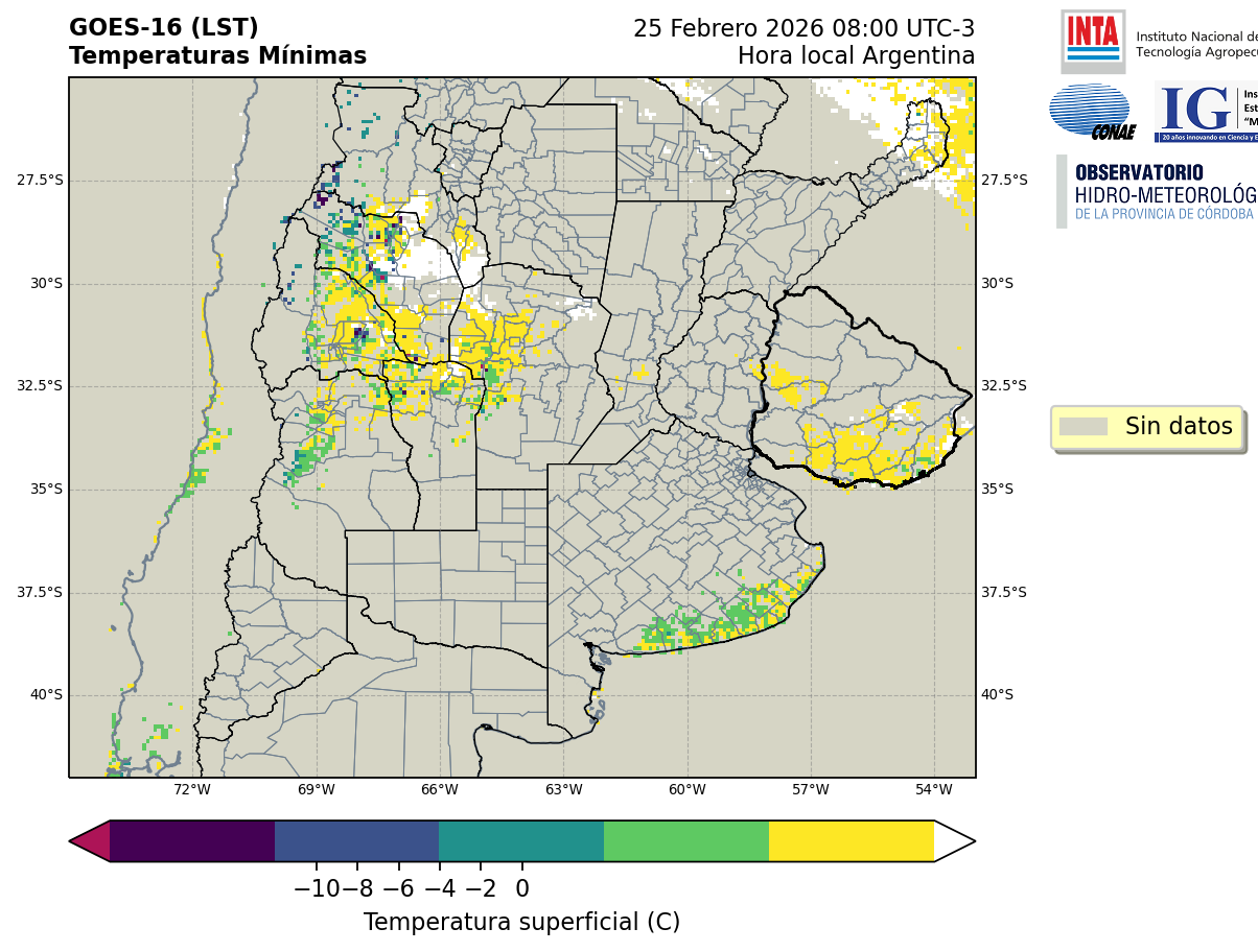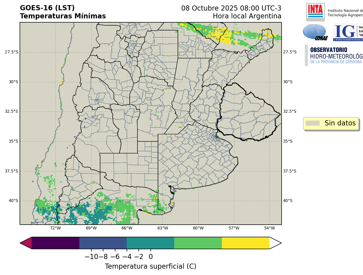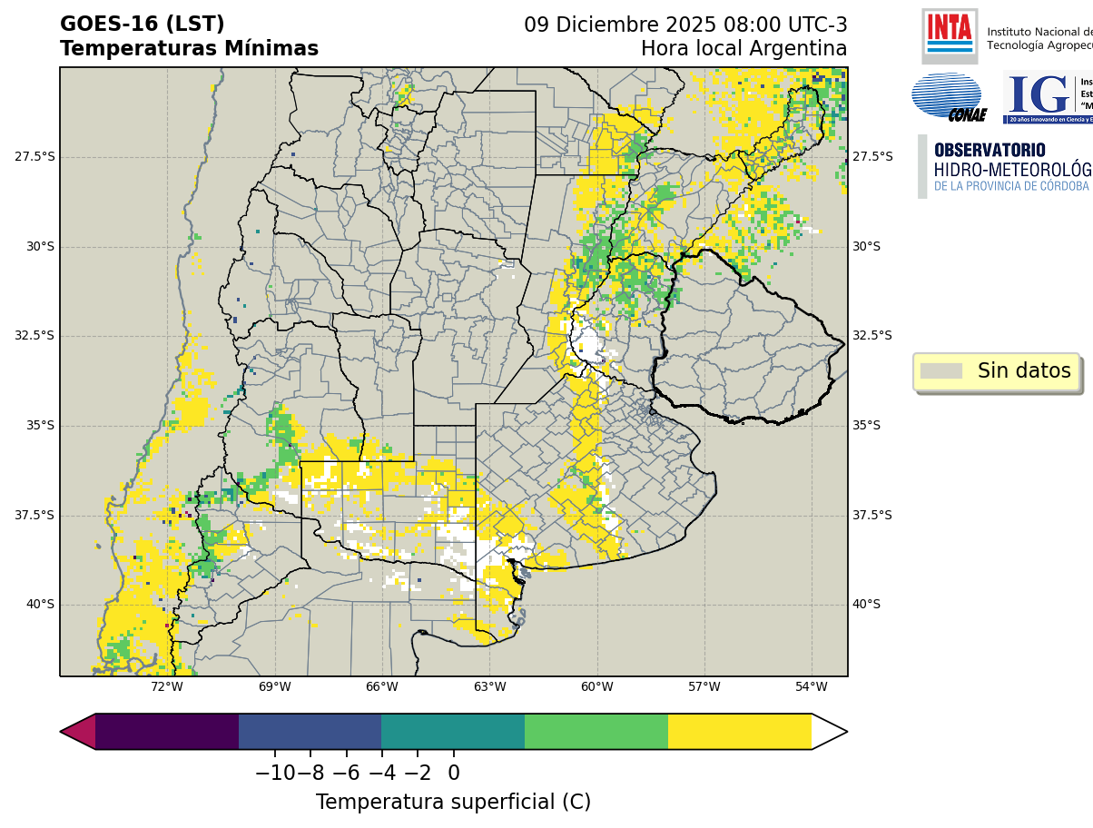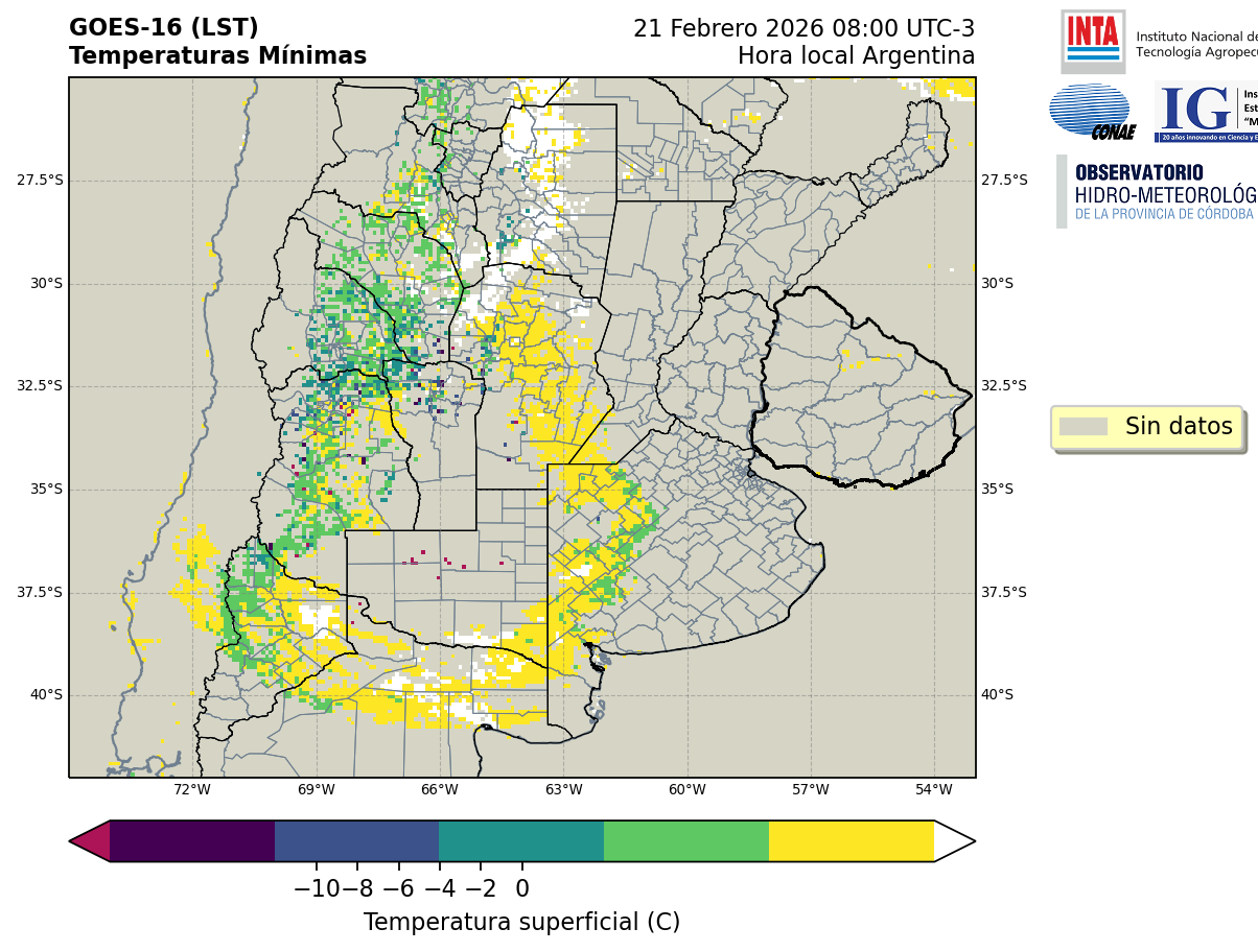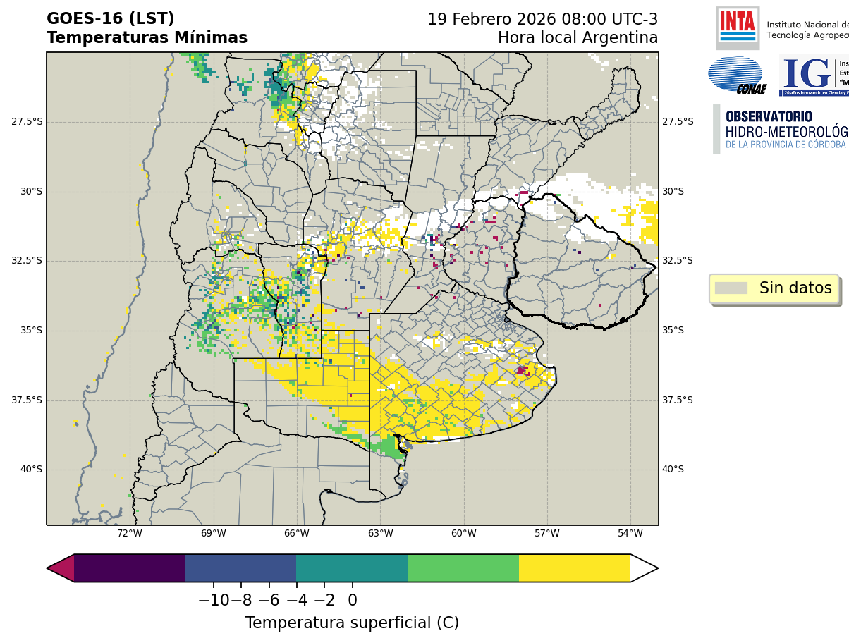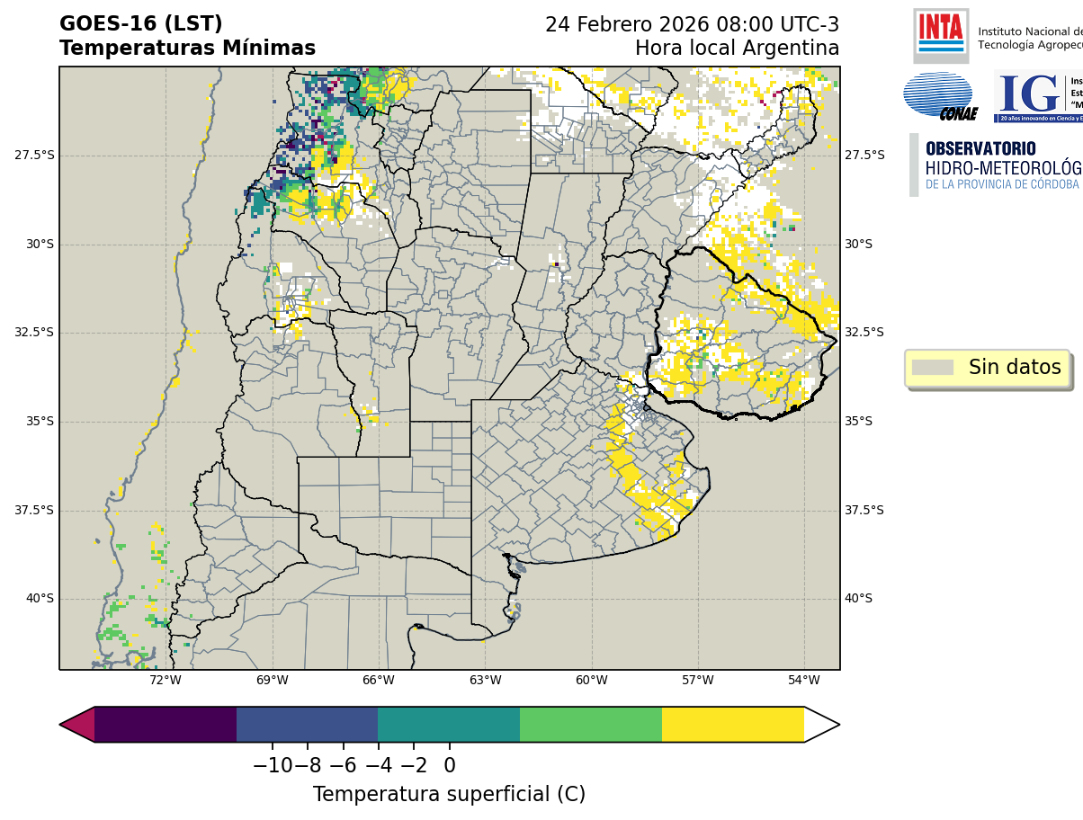 GOES 16 ABI Temperaturas Mínimas - Temperaturas Mínimas