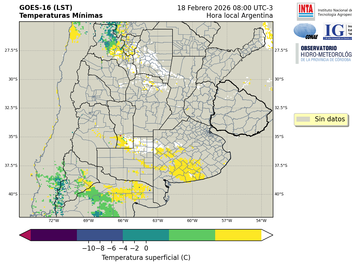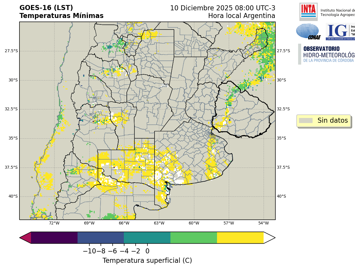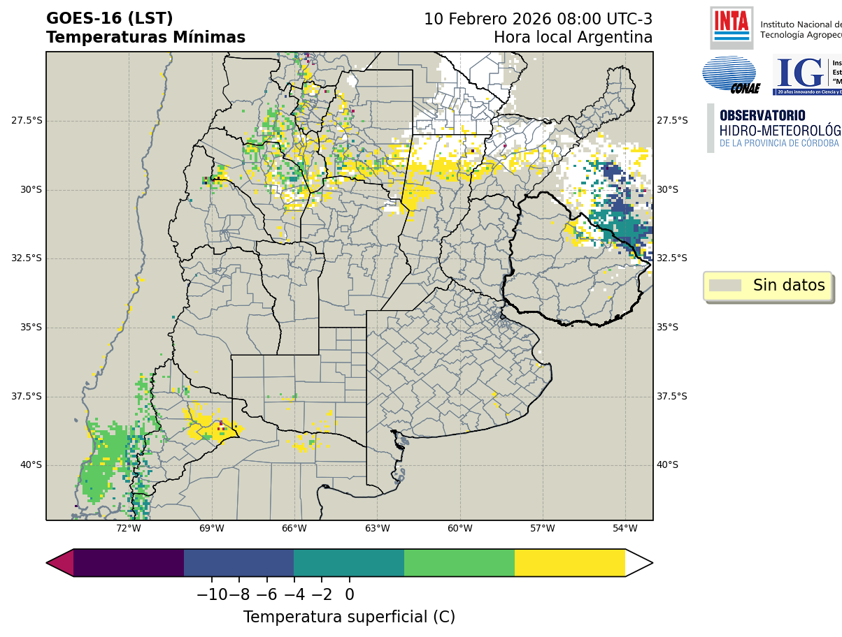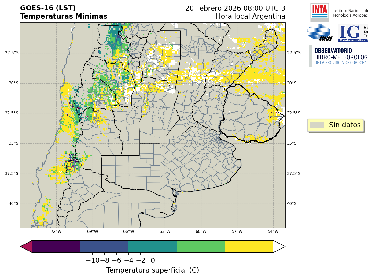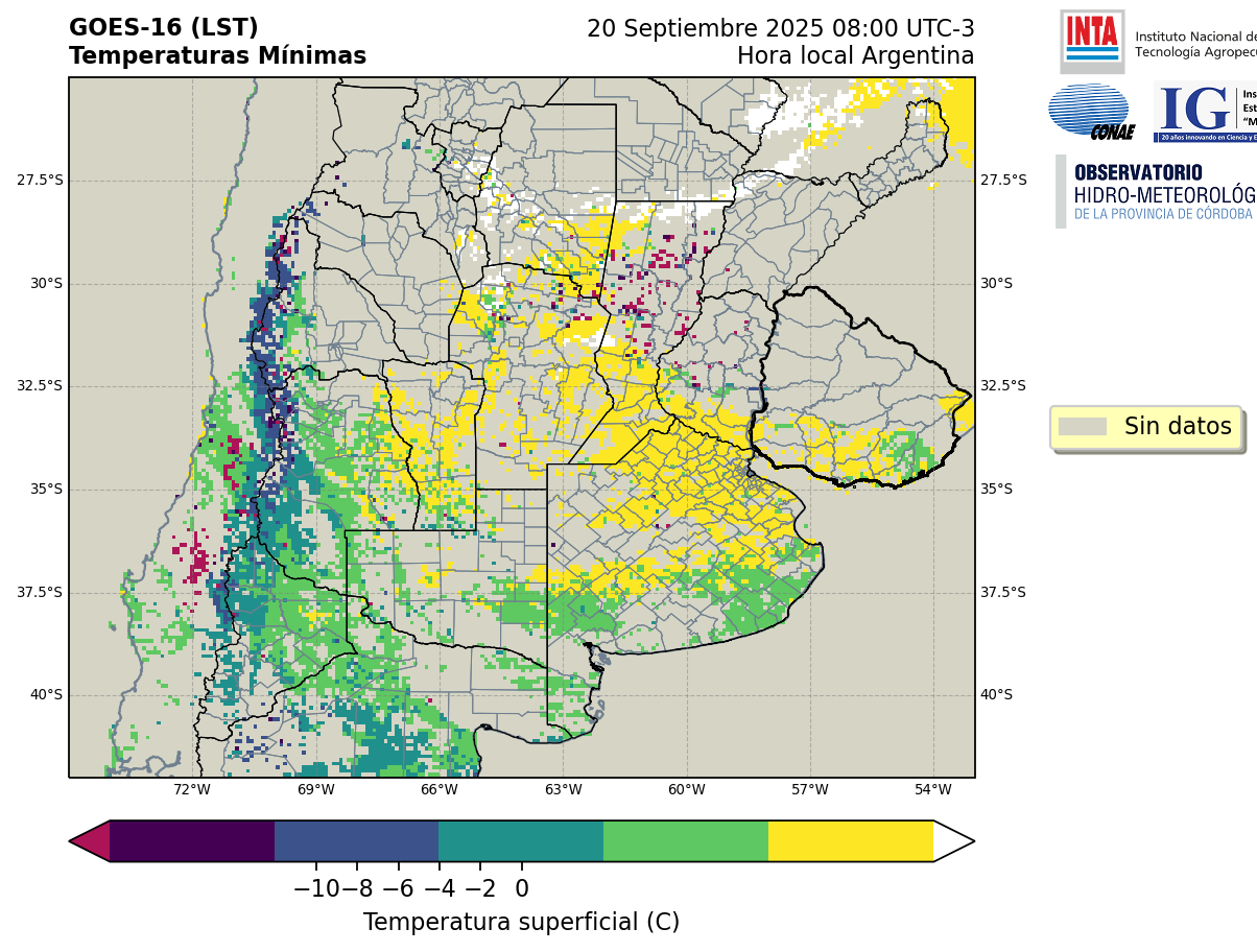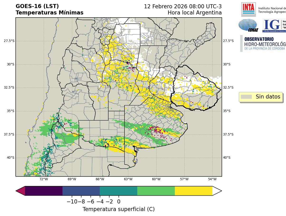 GOES 16 ABI Temperaturas Mínimas - Temperaturas Mínimas