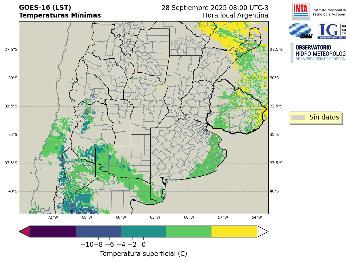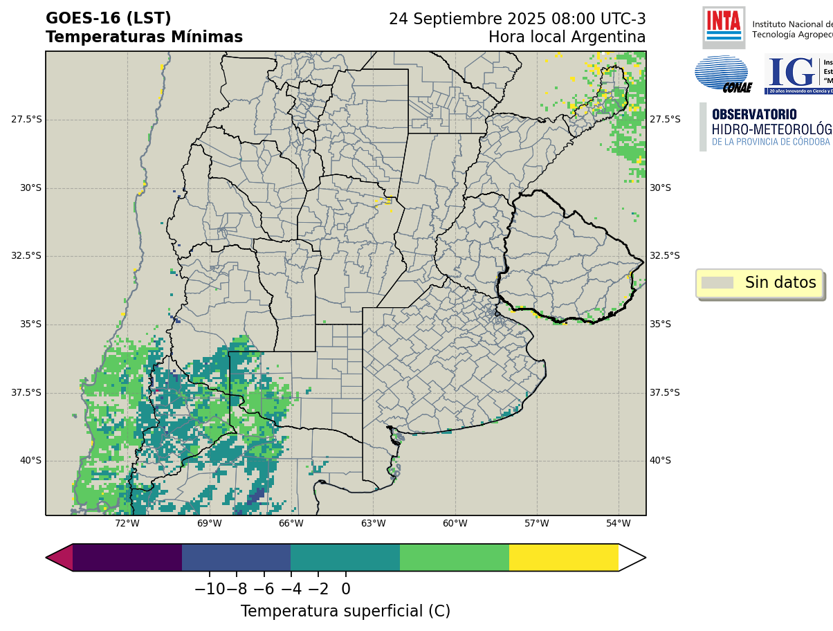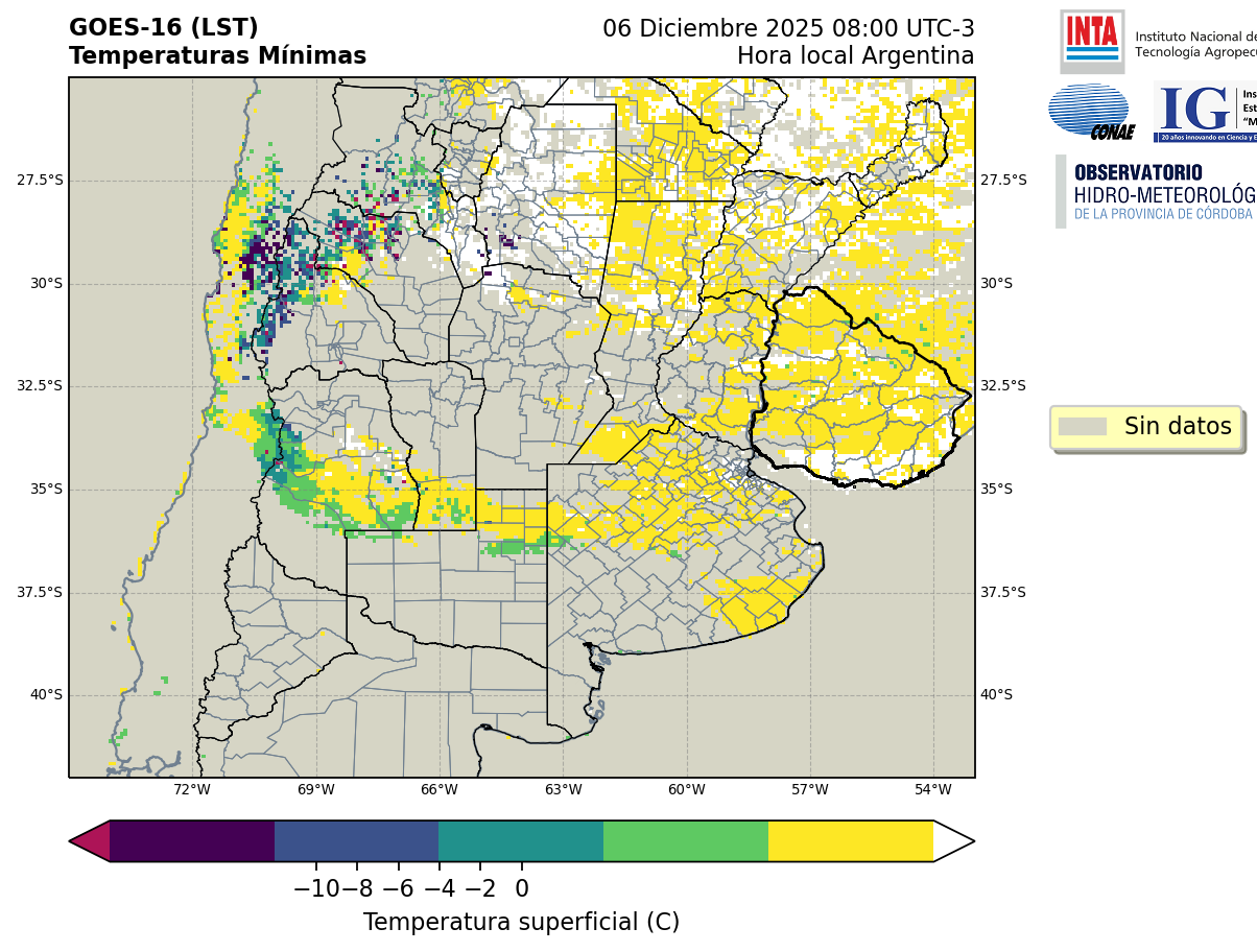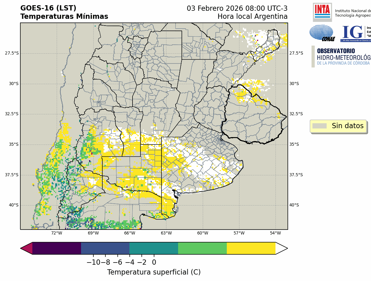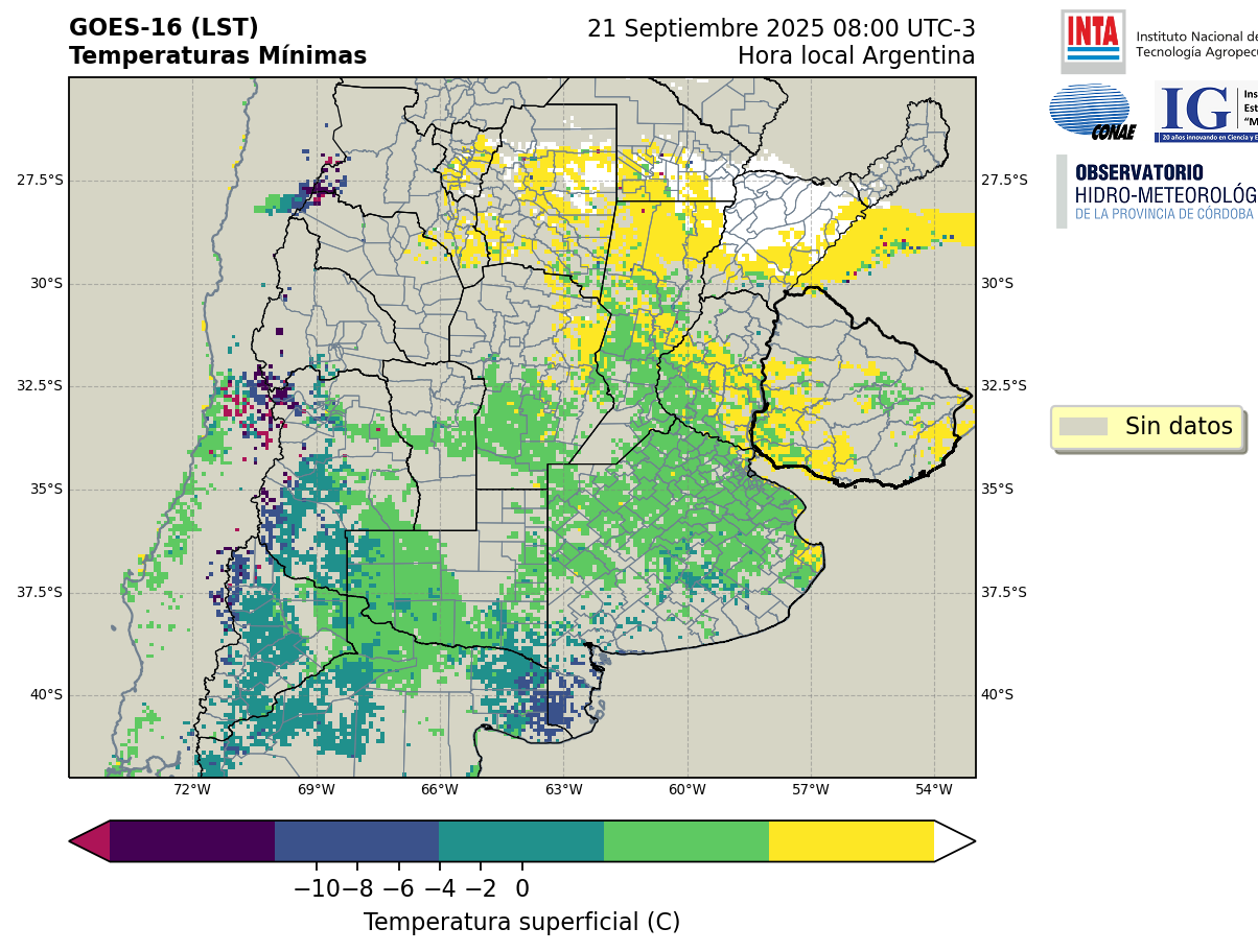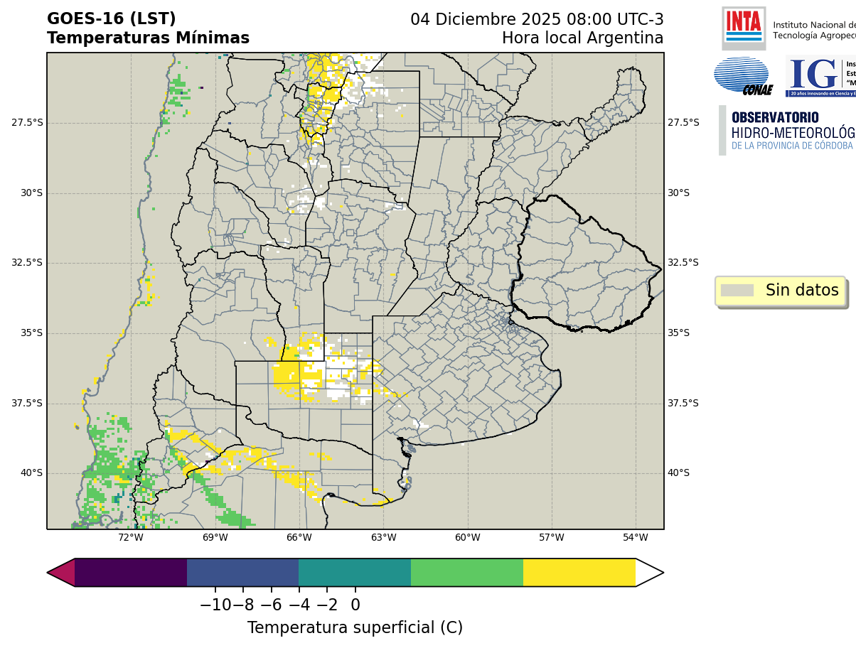 GOES 16 ABI Temperaturas Mínimas - Temperaturas Mínimas