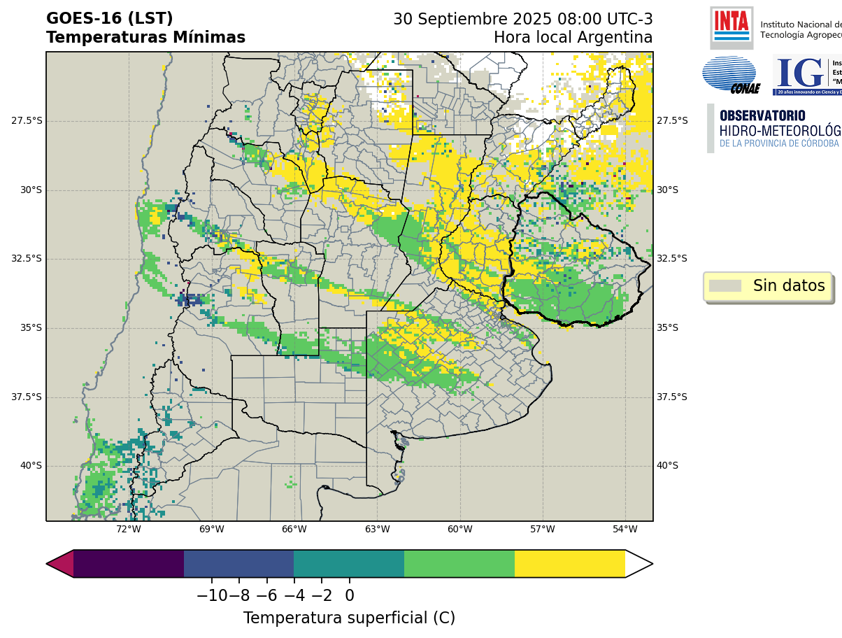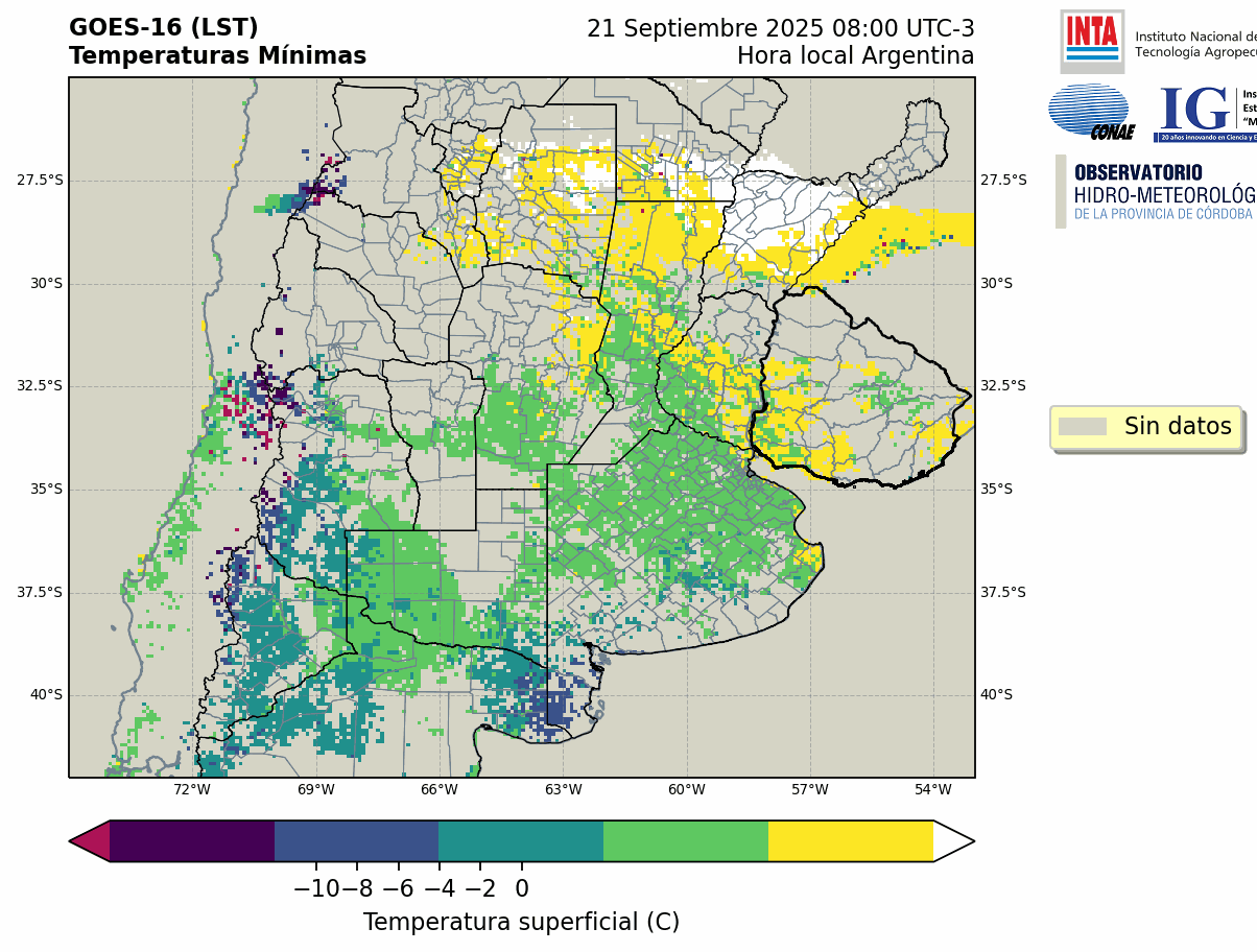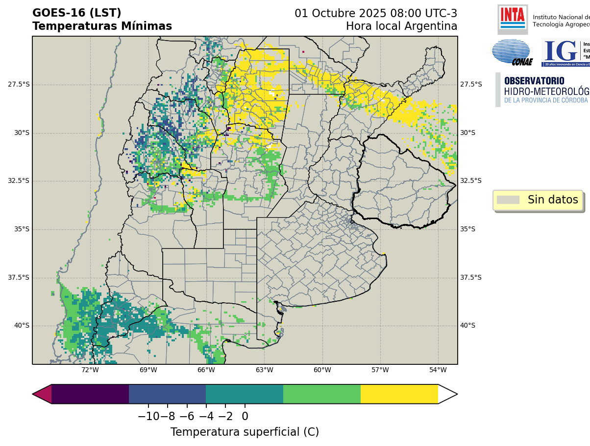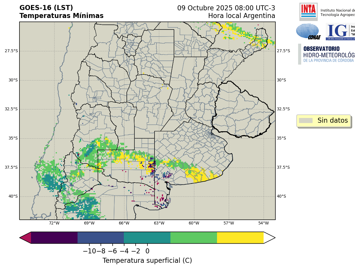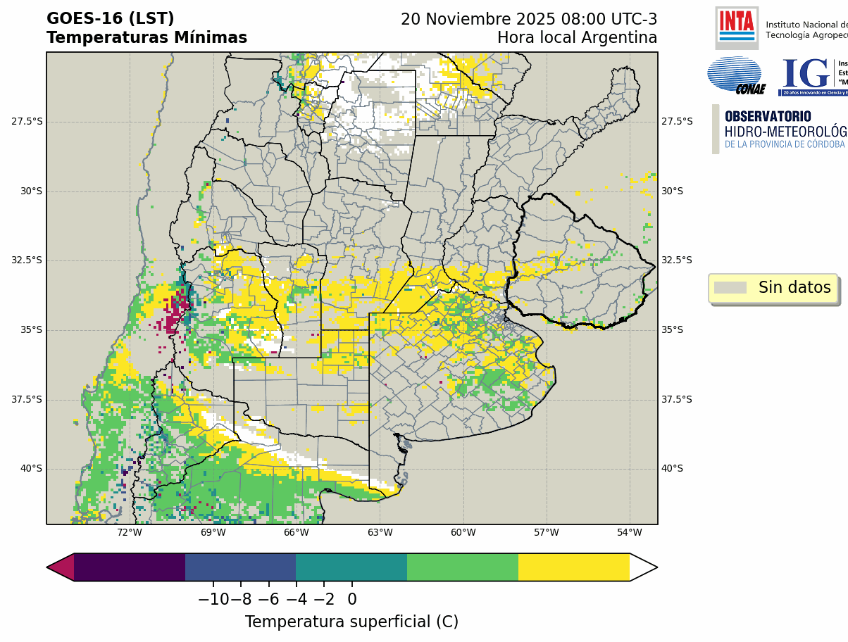 GOES 16 ABI Temperaturas Mínimas - Temperaturas Mínimas