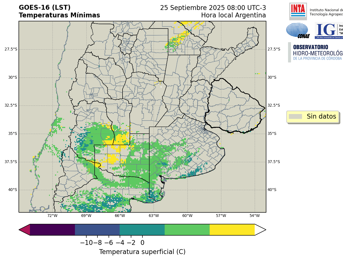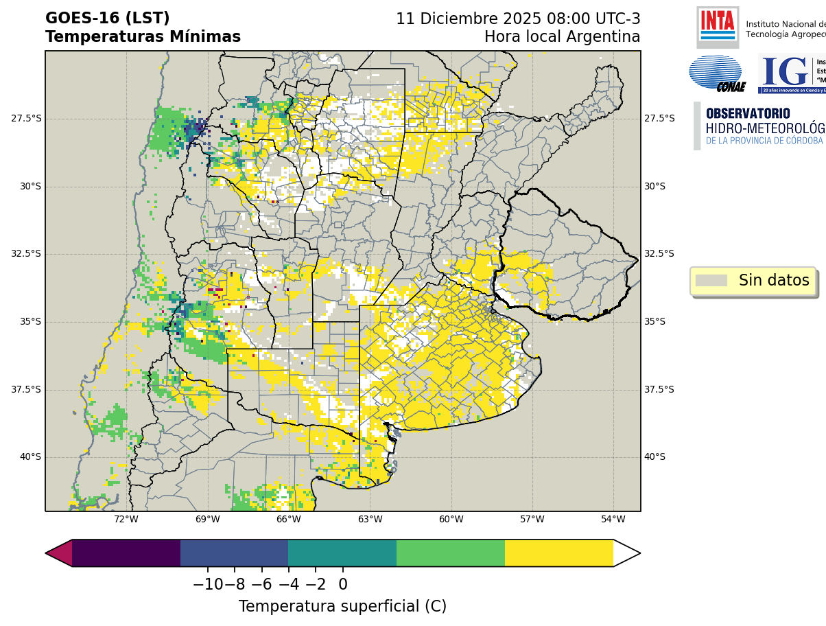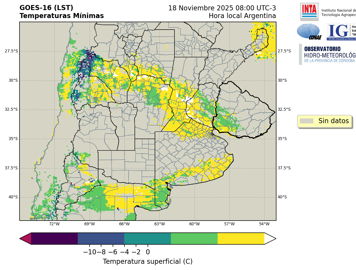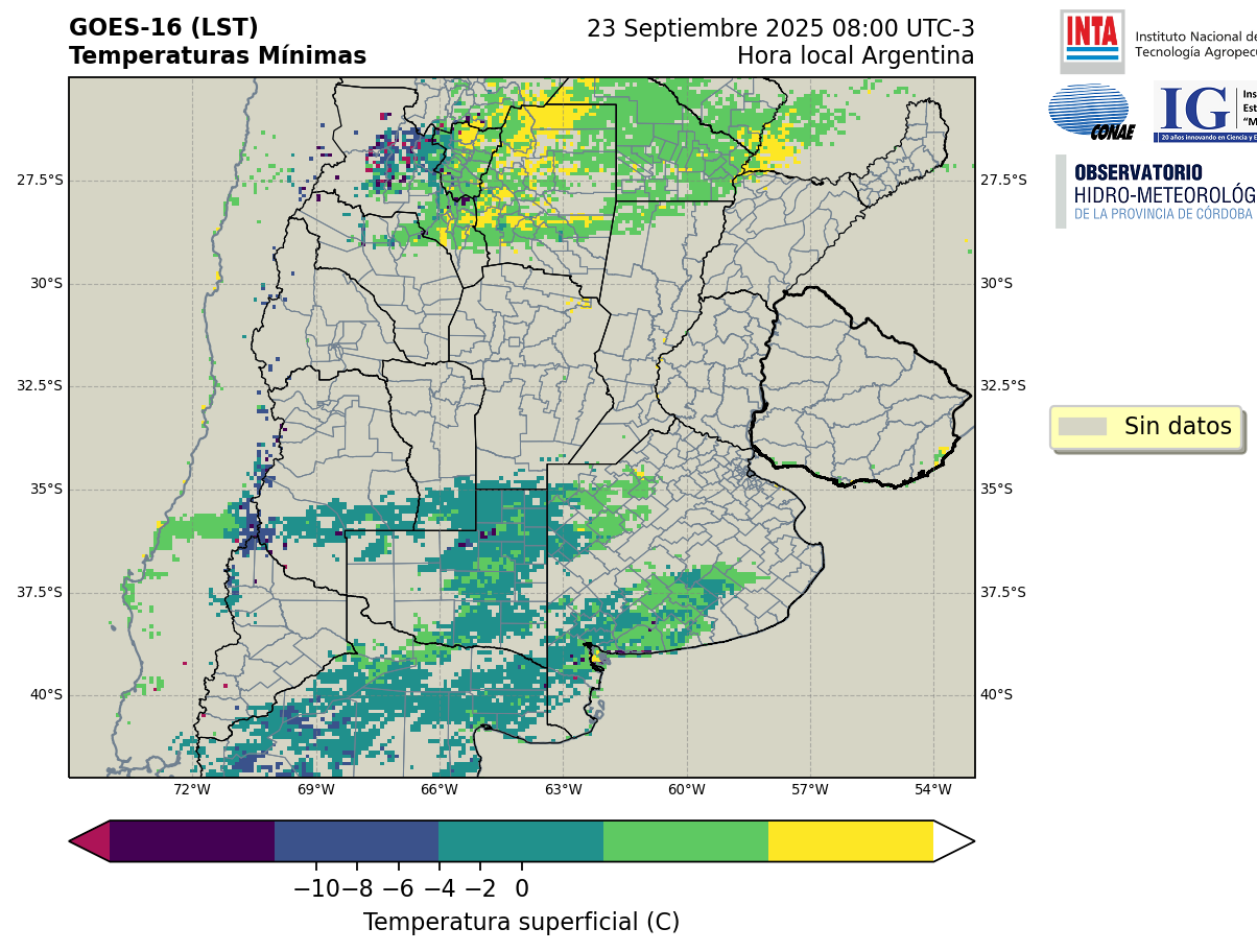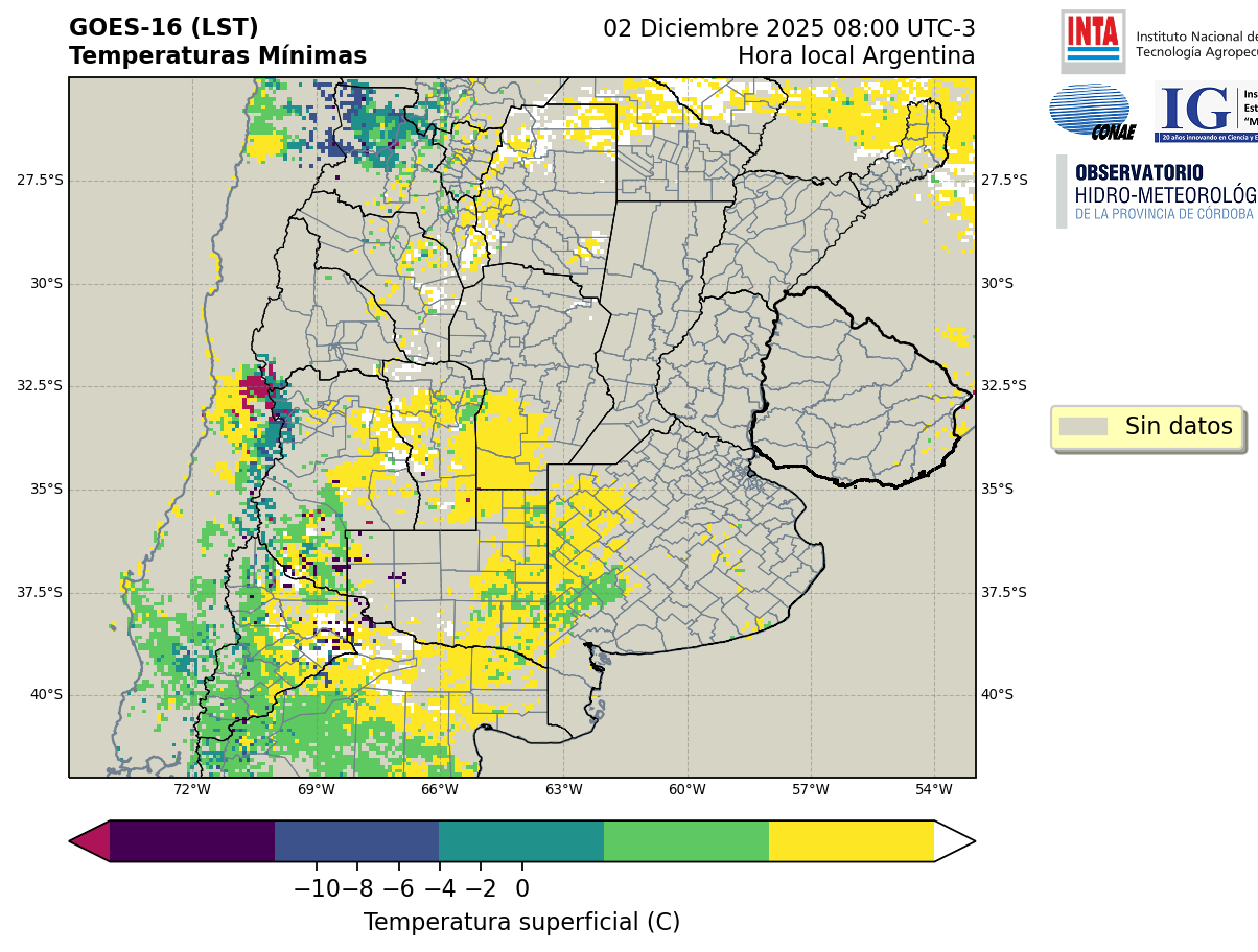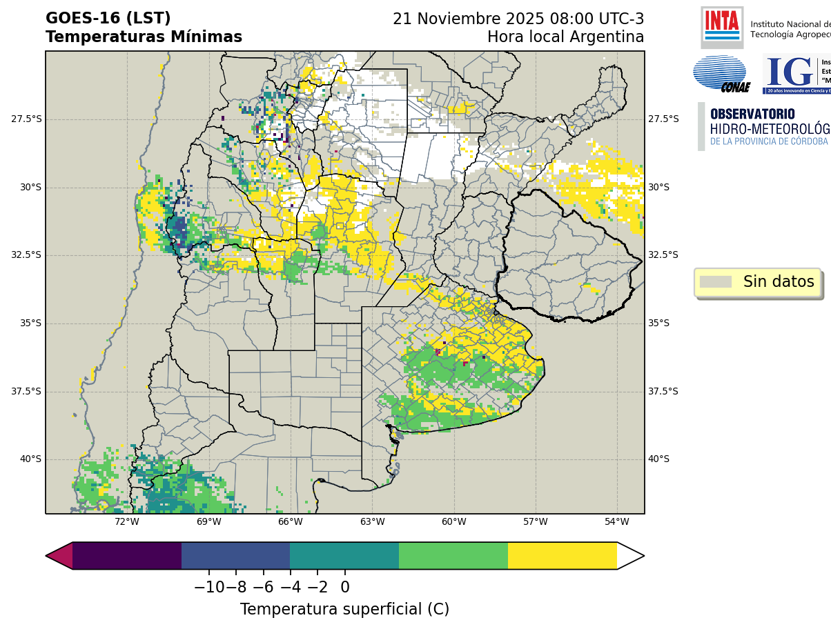 GOES 16 ABI Temperaturas Mínimas - Temperaturas Mínimas