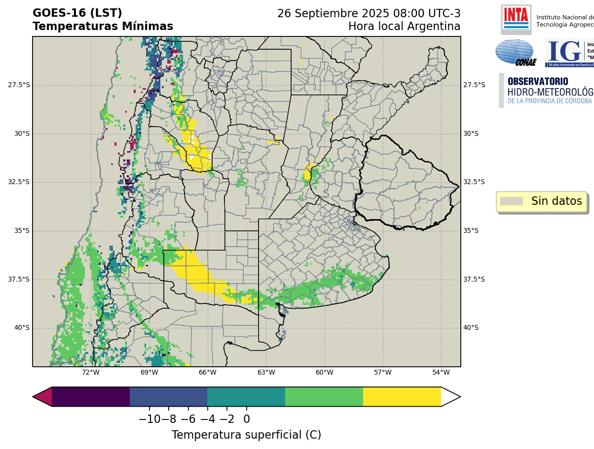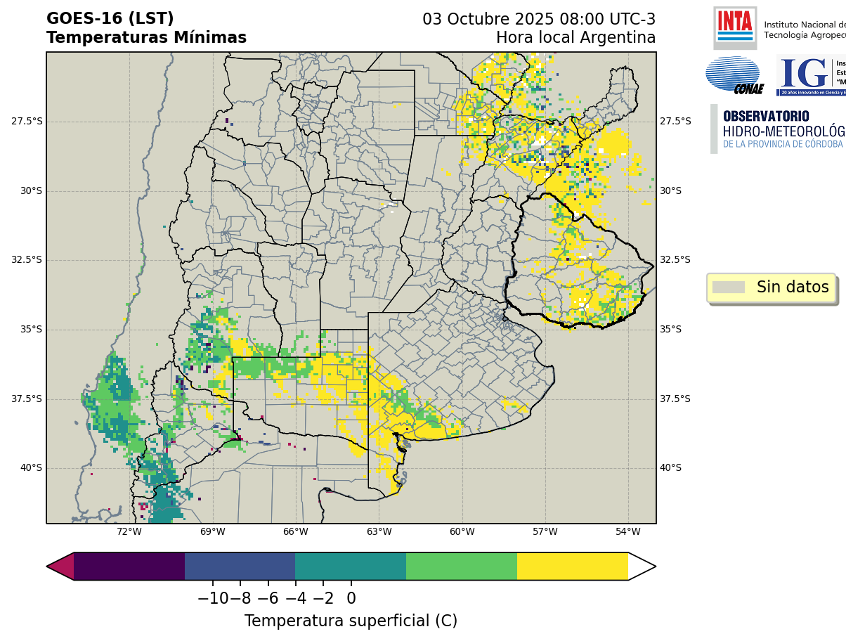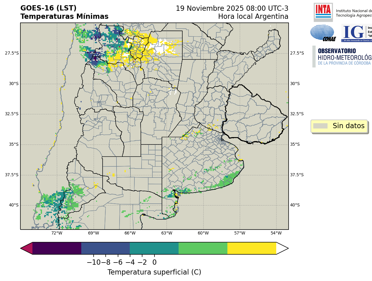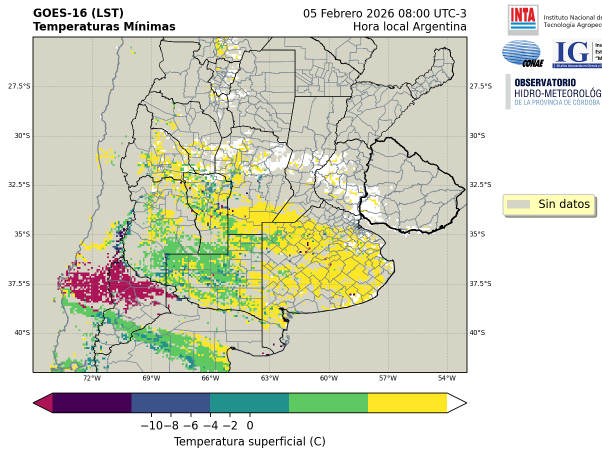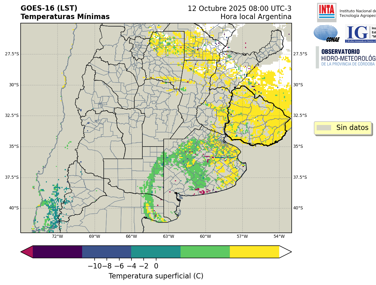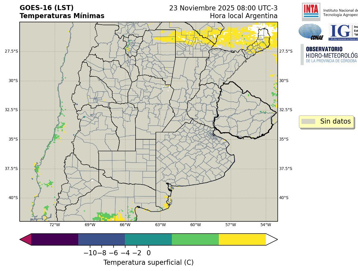 GOES 16 ABI Temperaturas Mínimas - Temperaturas Mínimas