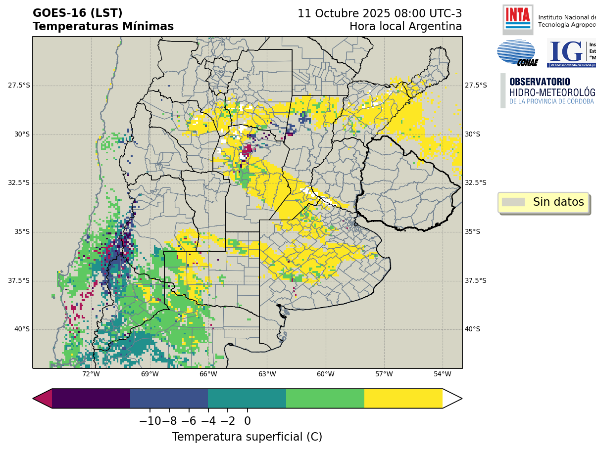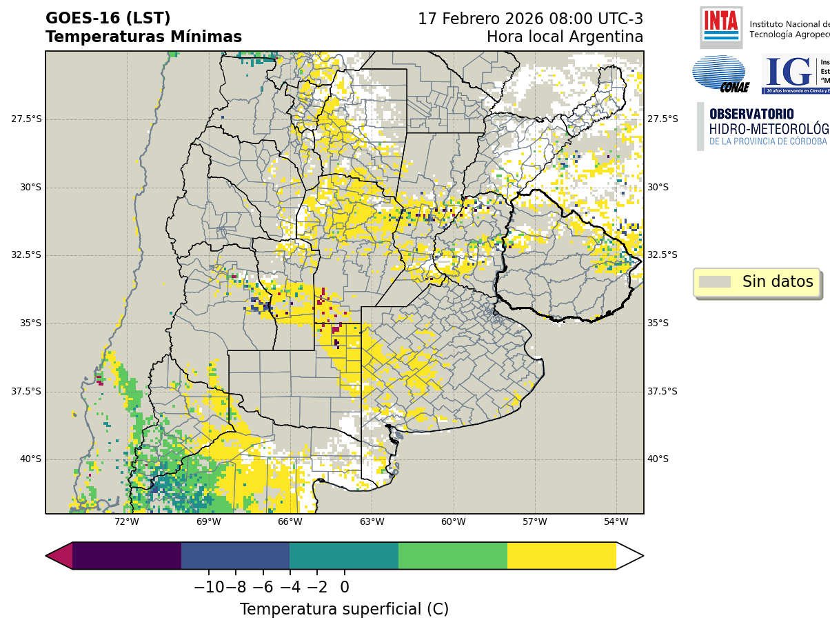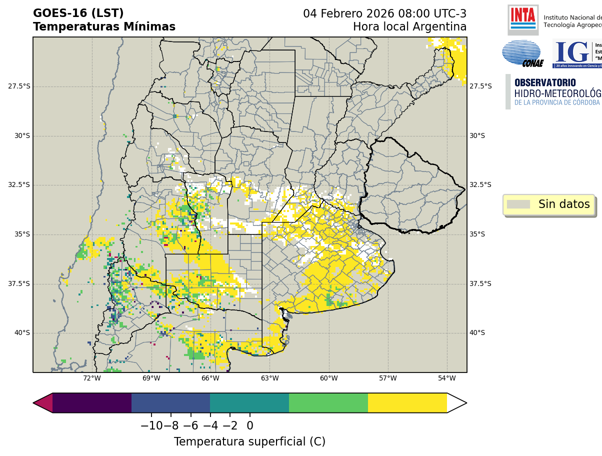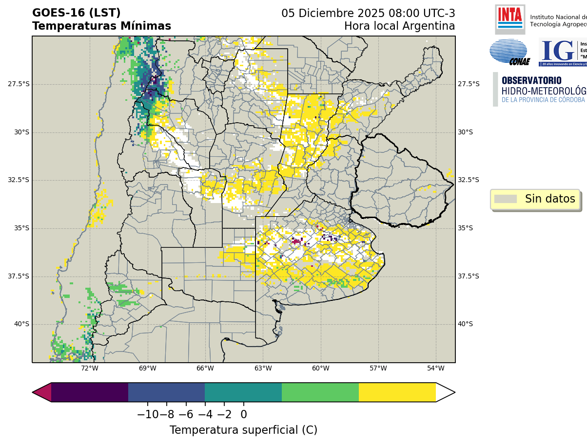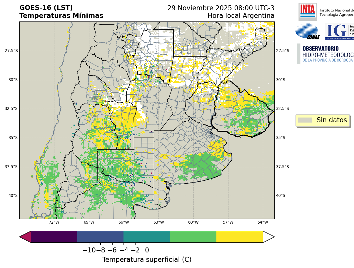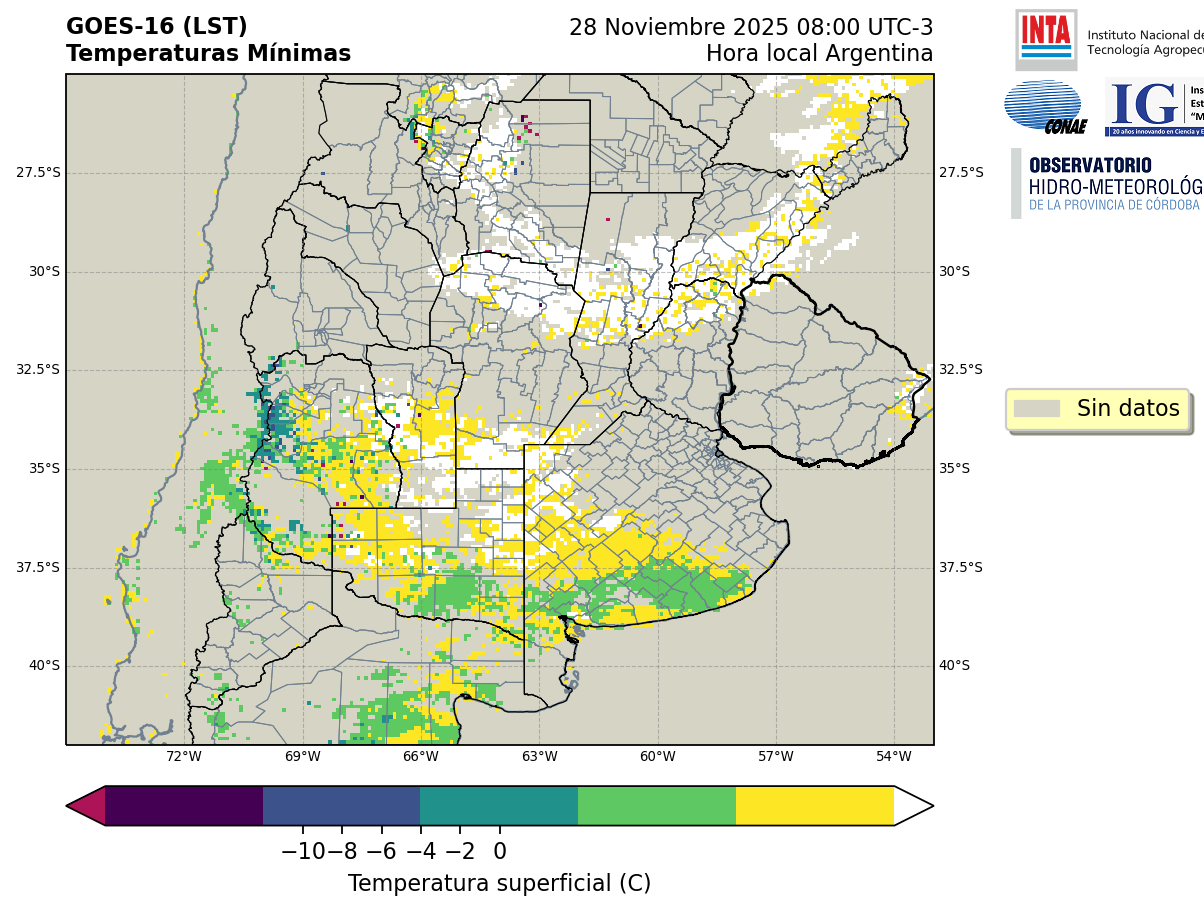 GOES 16 ABI Temperaturas Mínimas - Temperaturas Mínimas