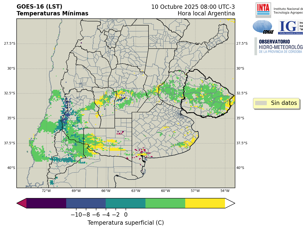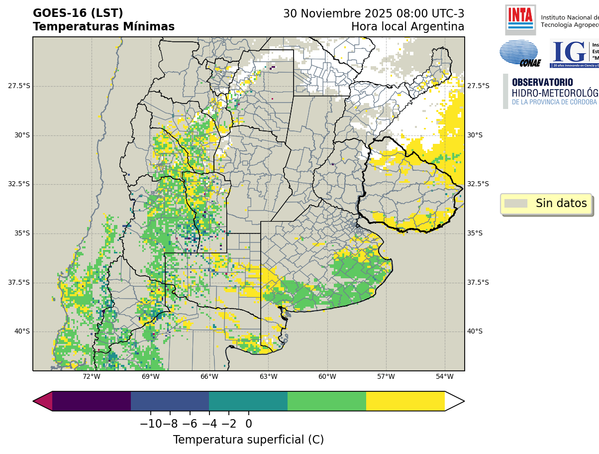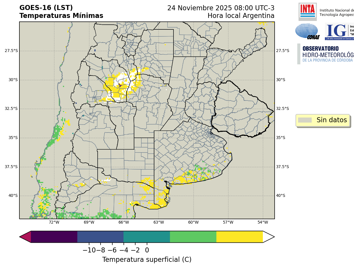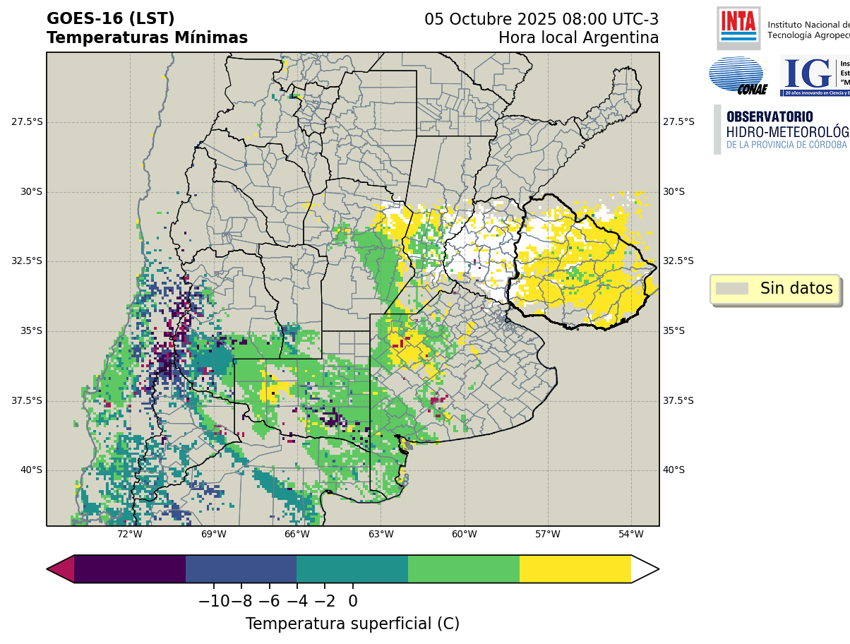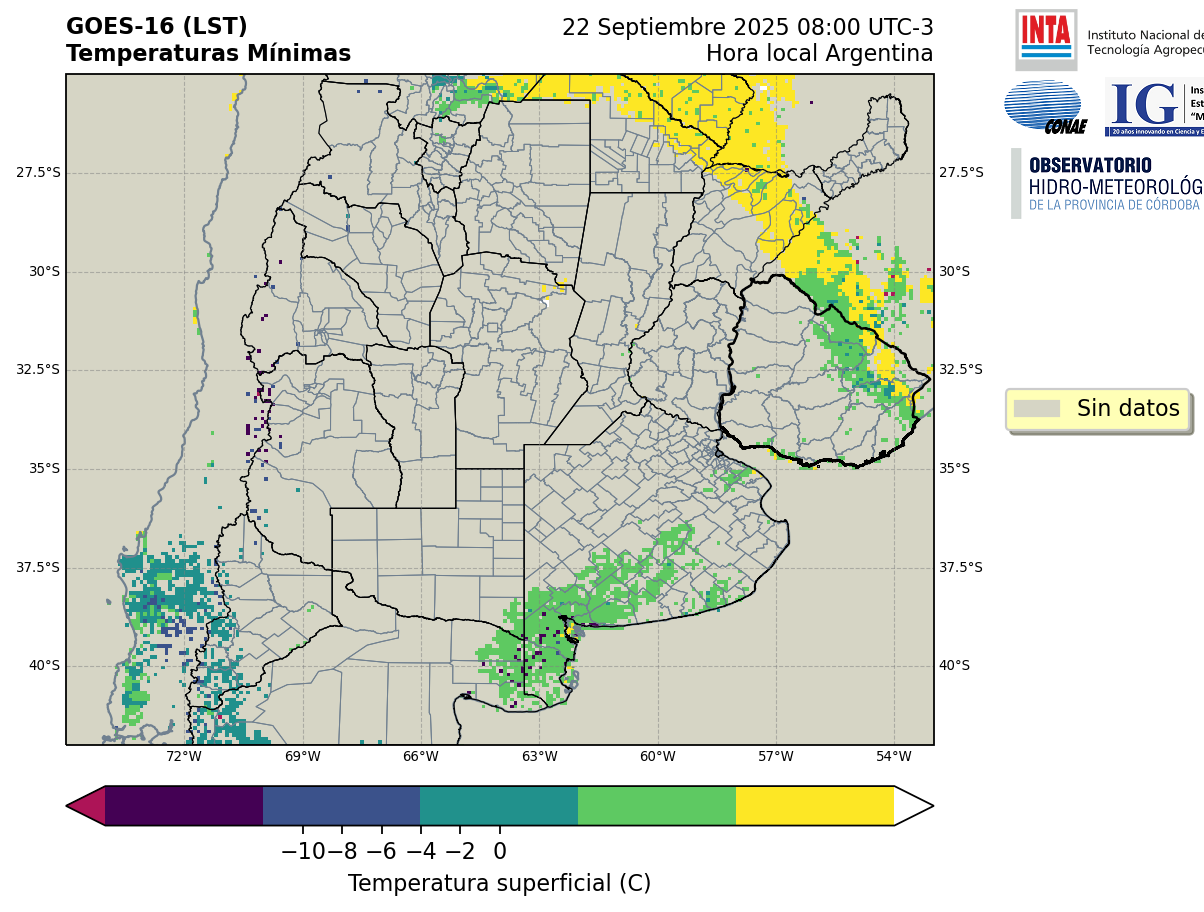 GOES 16 ABI Temperaturas Mínimas - Temperaturas Mínimas