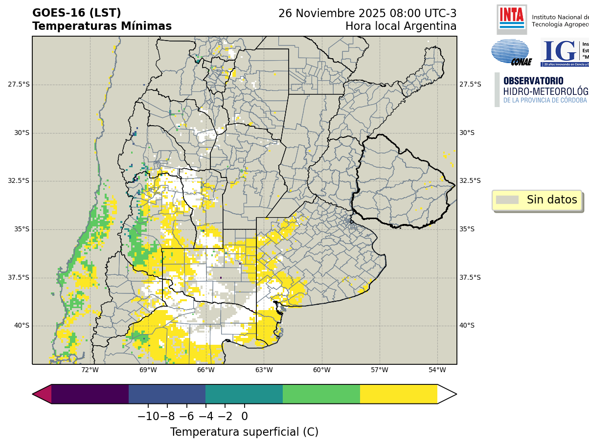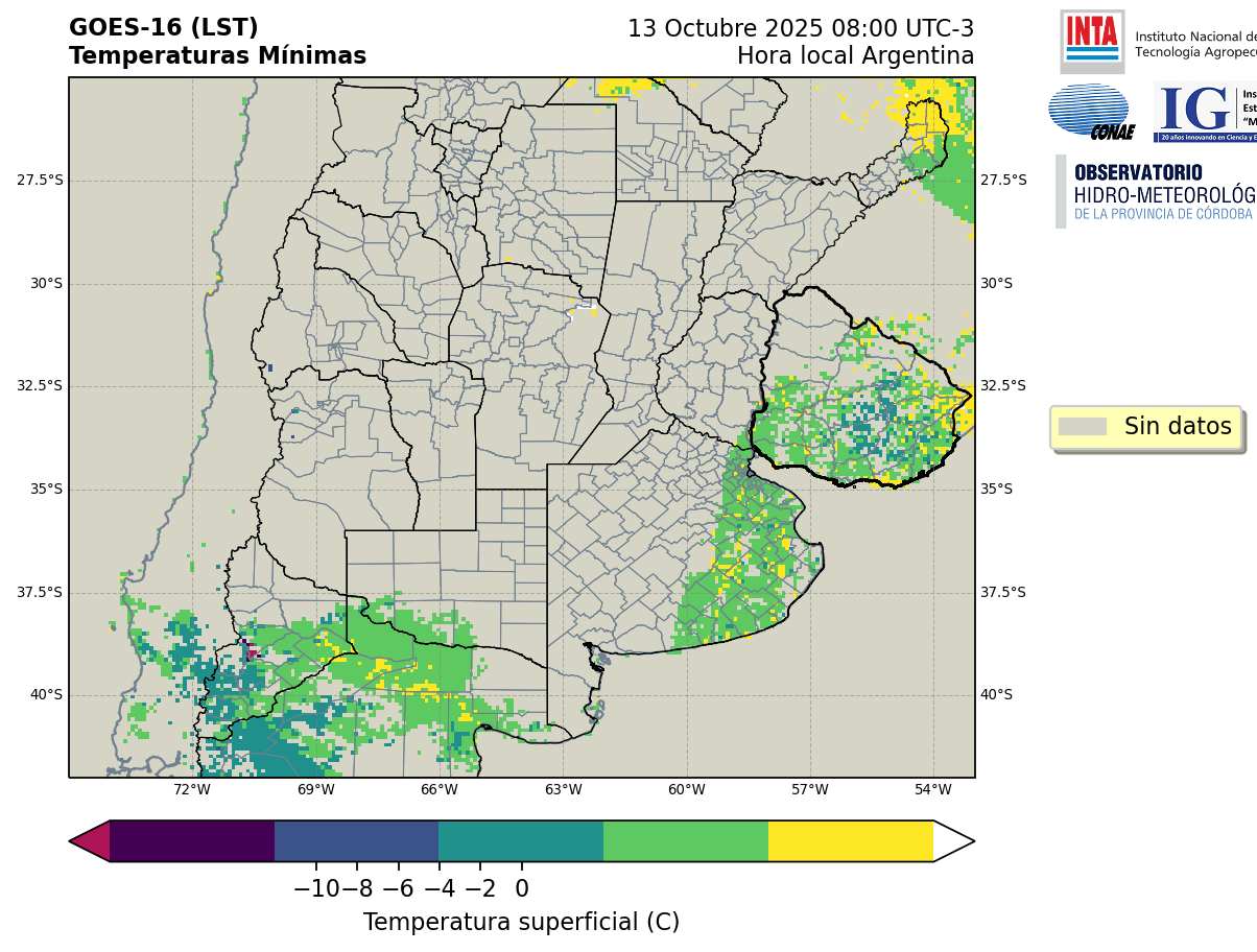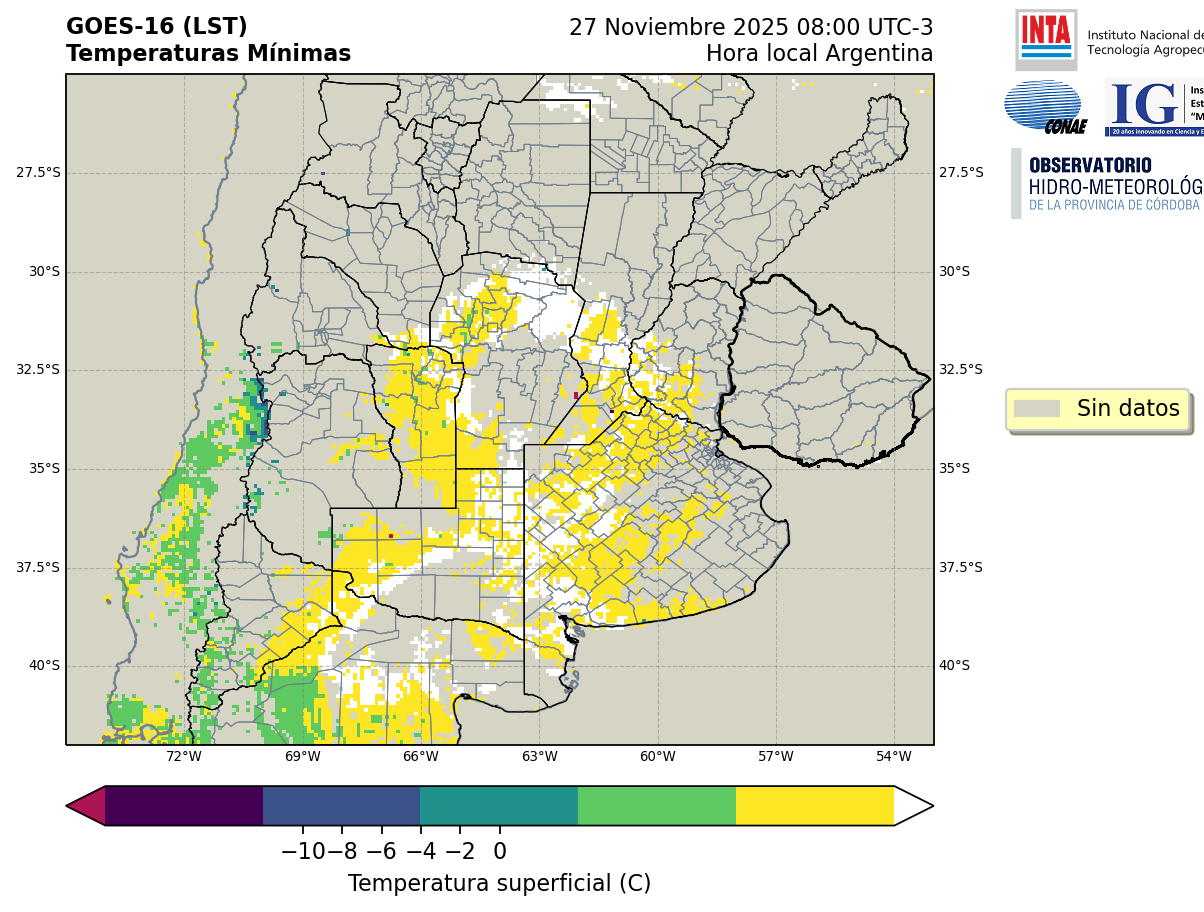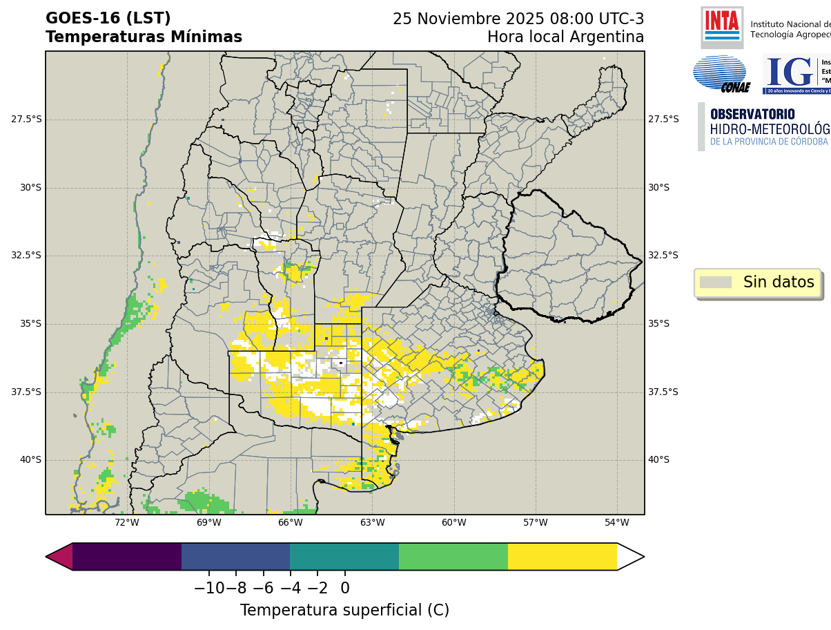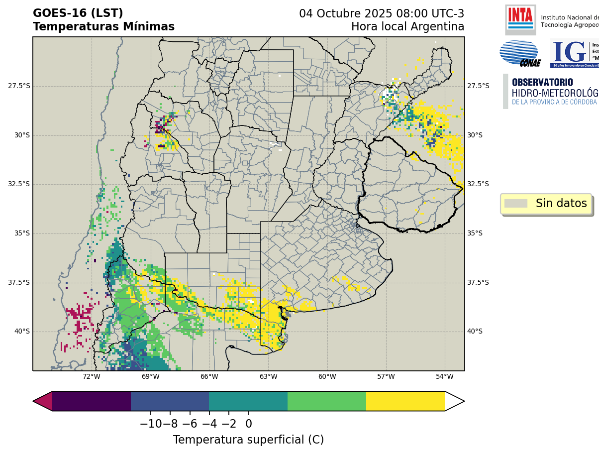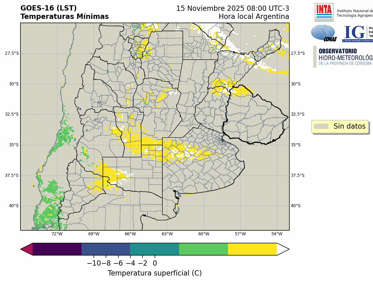 GOES 16 ABI Temperaturas Mínimas - Temperaturas Mínimas