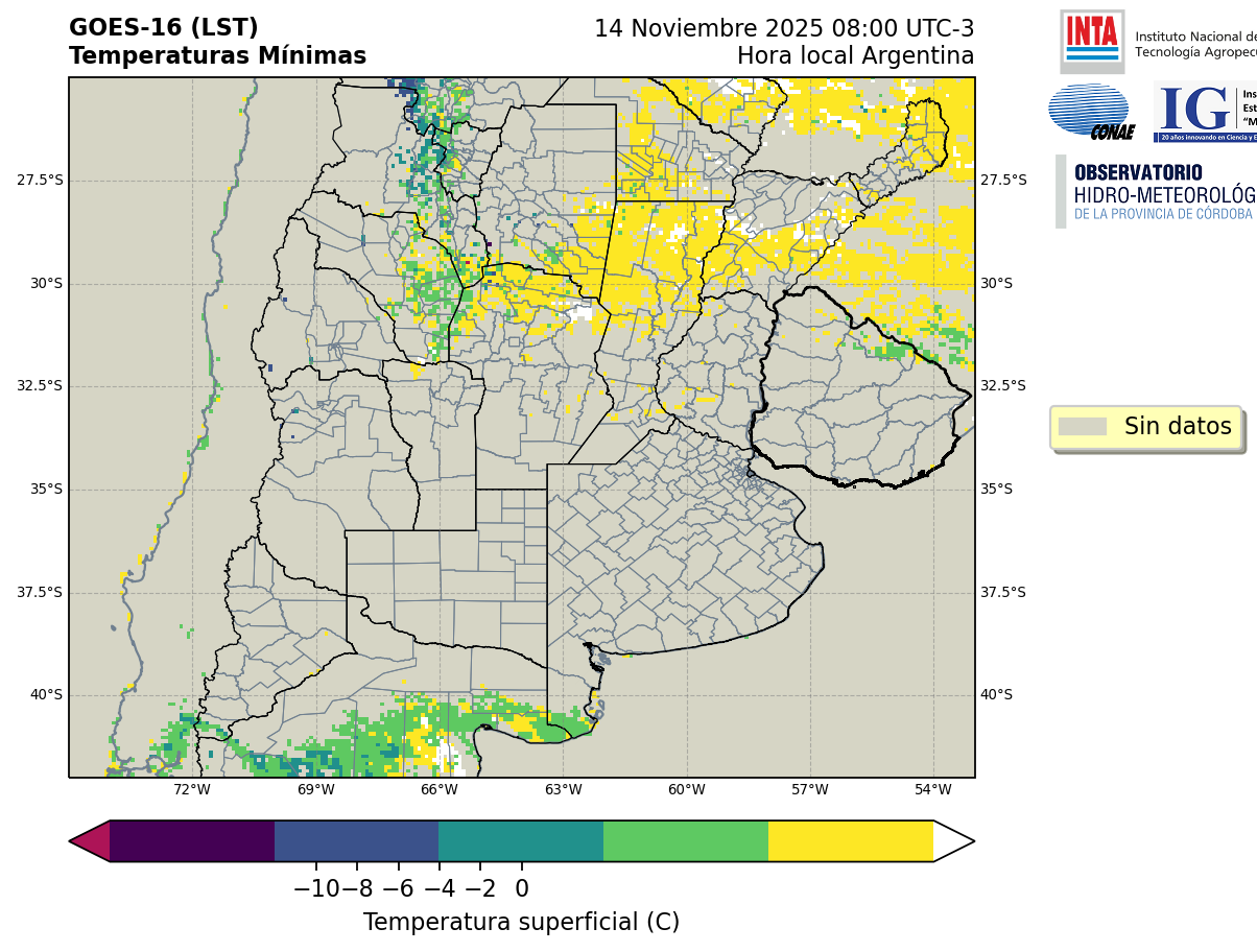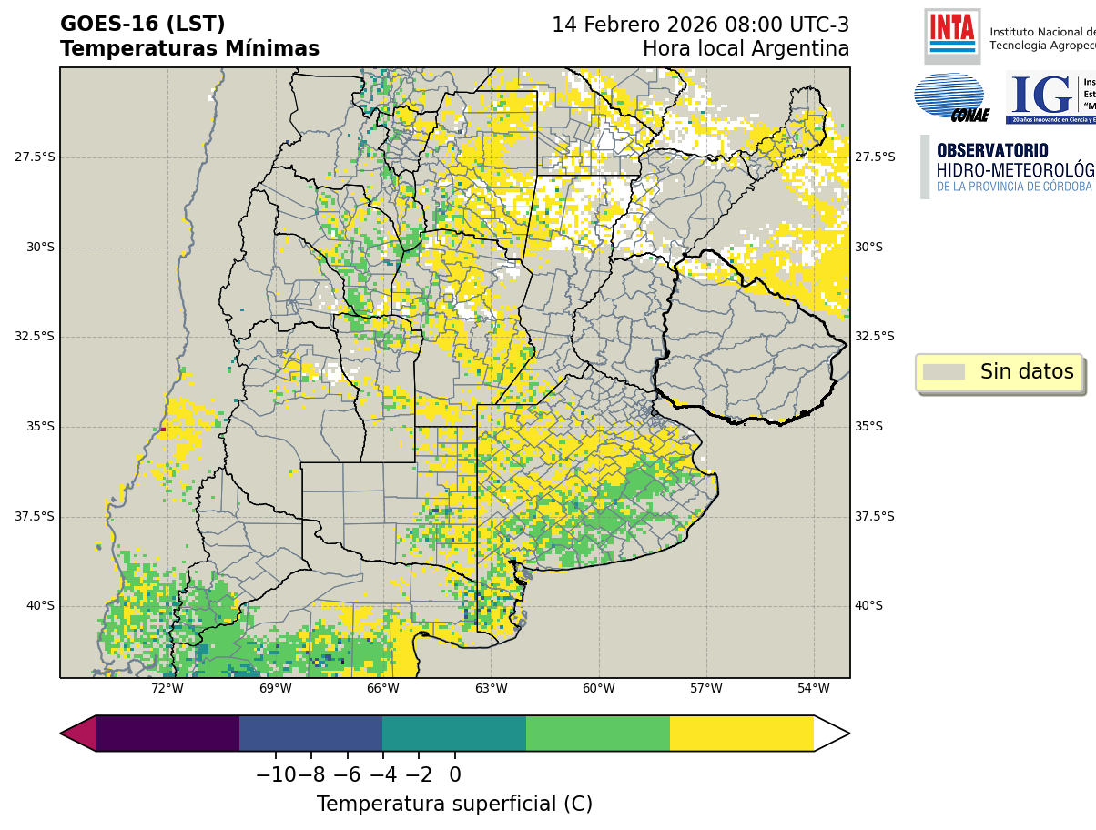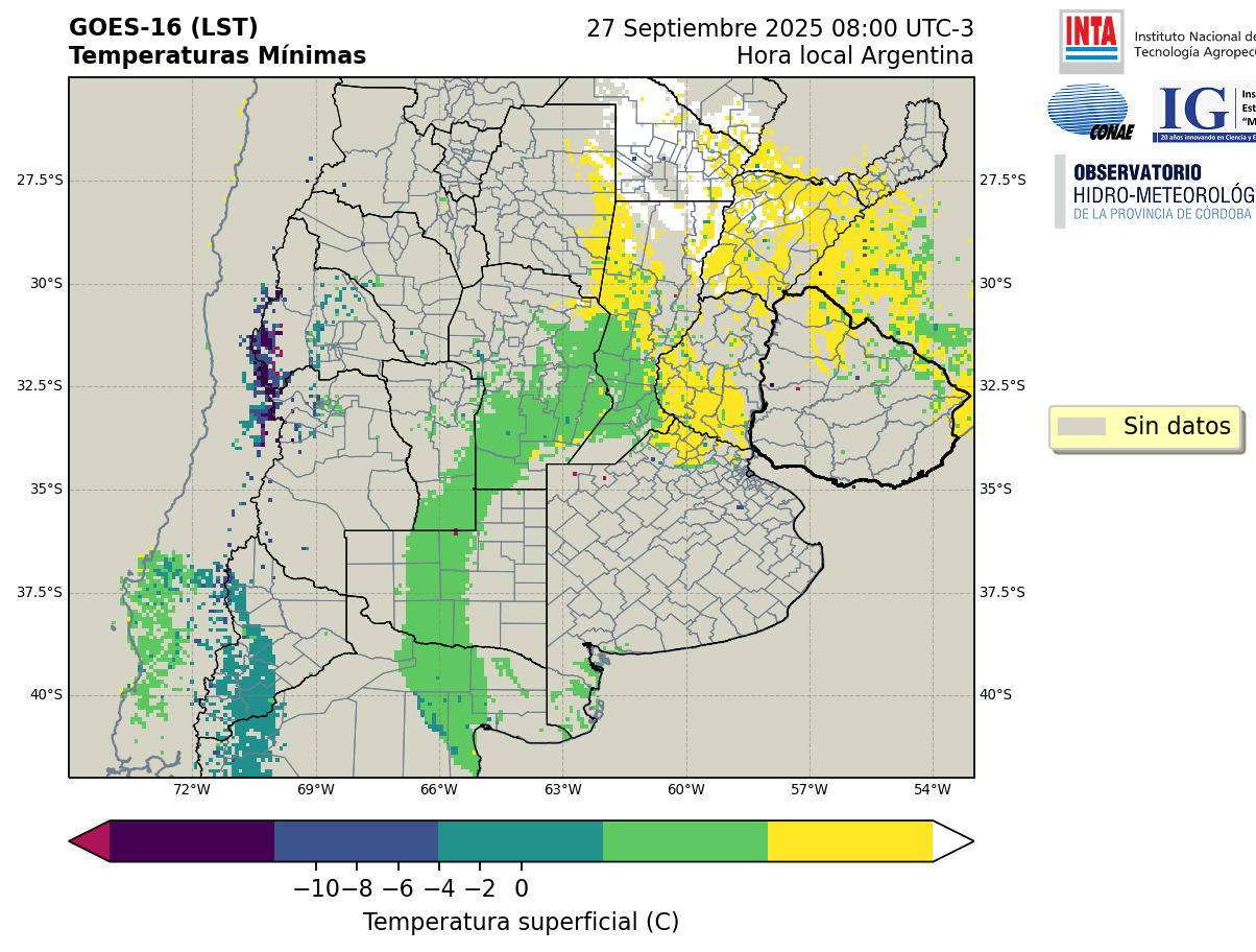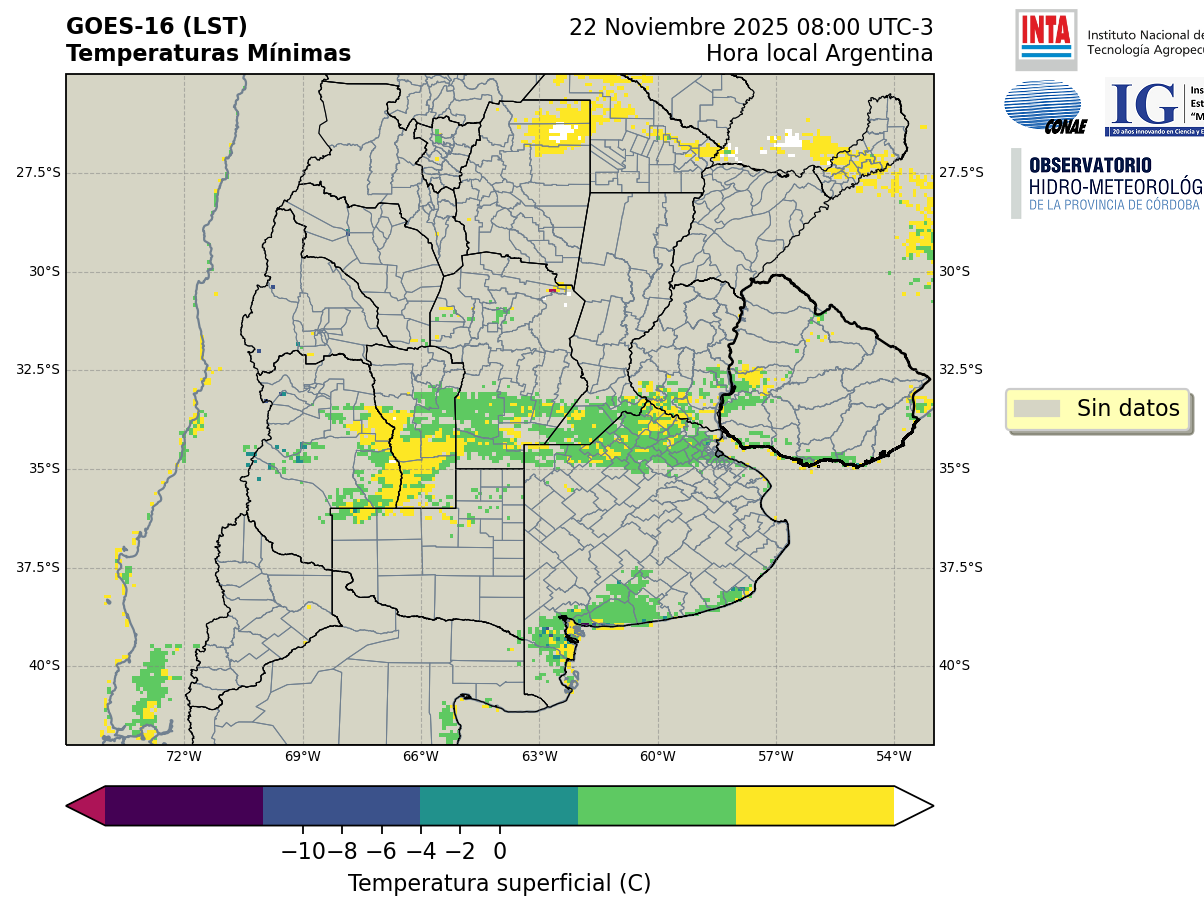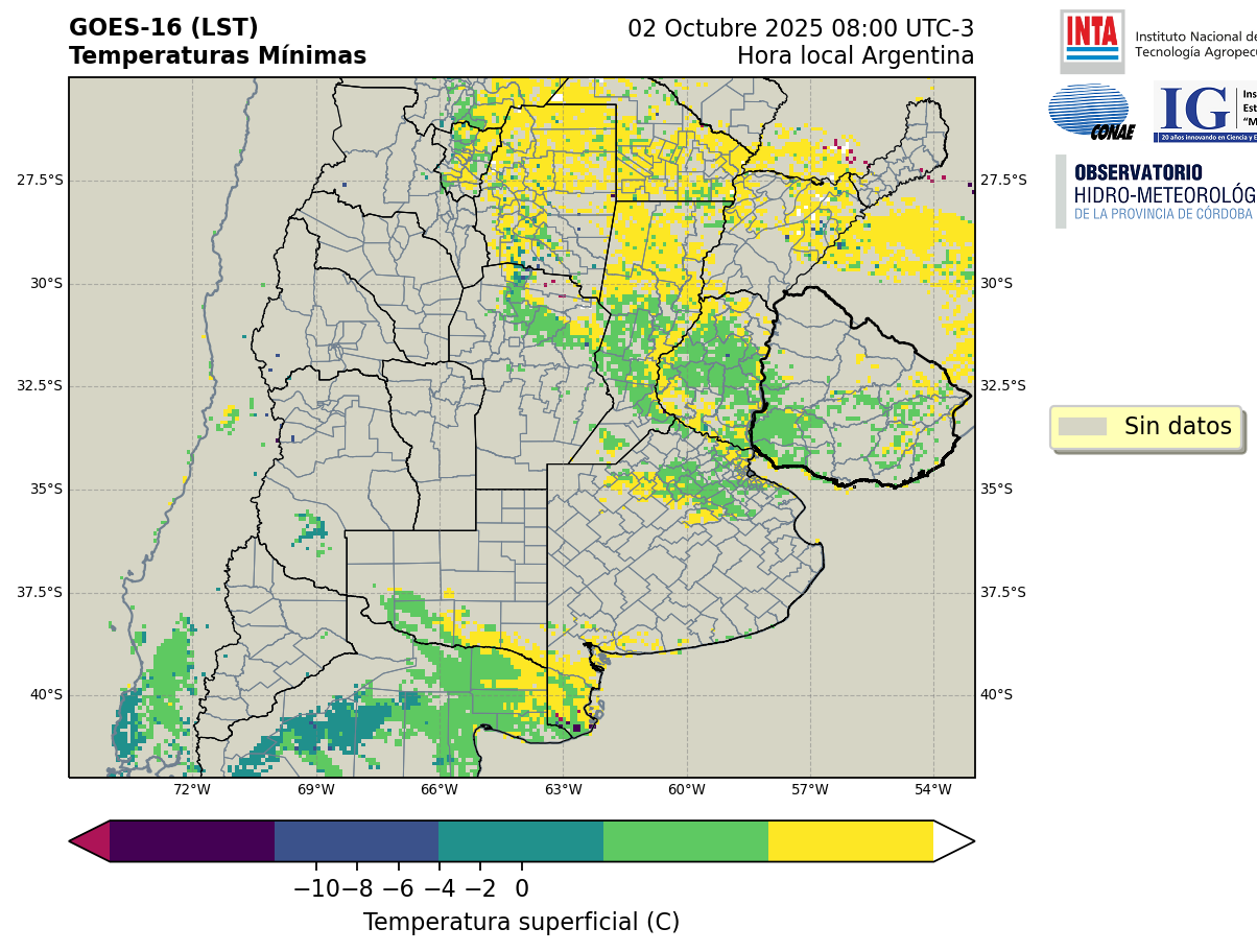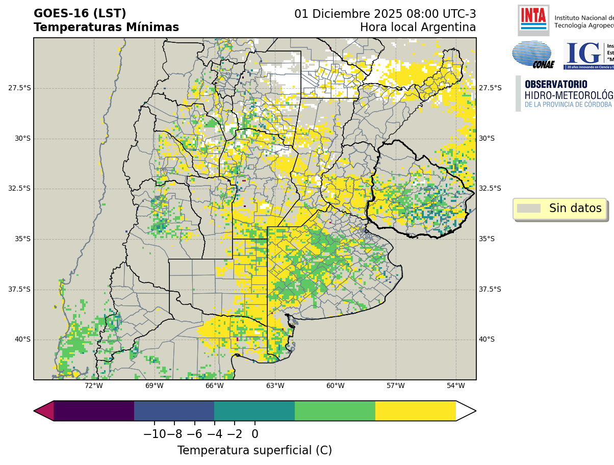 GOES 16 ABI Temperaturas Mínimas - Temperaturas Mínimas