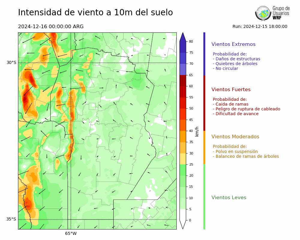 • Intensidad máxima: 13.90 km/h (16/12/2024 10hs.)