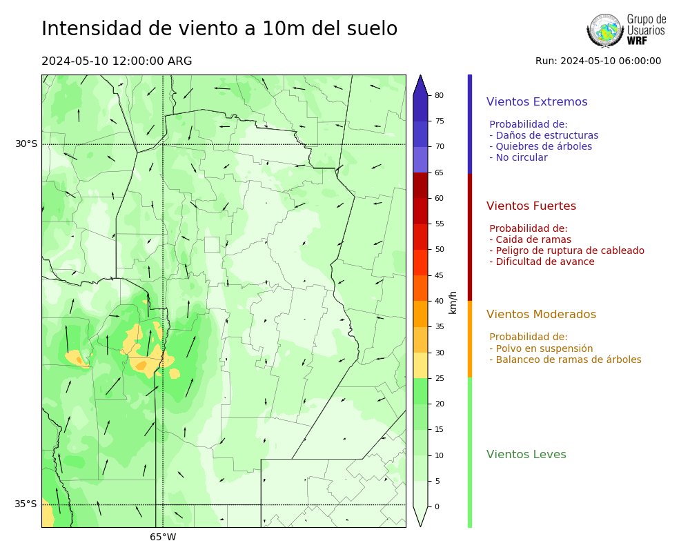 • Intensidad máxima: 14.88 km/h (10/05/2024 12hs.)