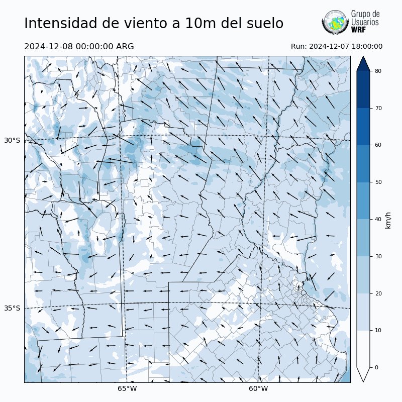 • Intensidad máxima: 12.99 km/h (08/12/2024 10hs.)