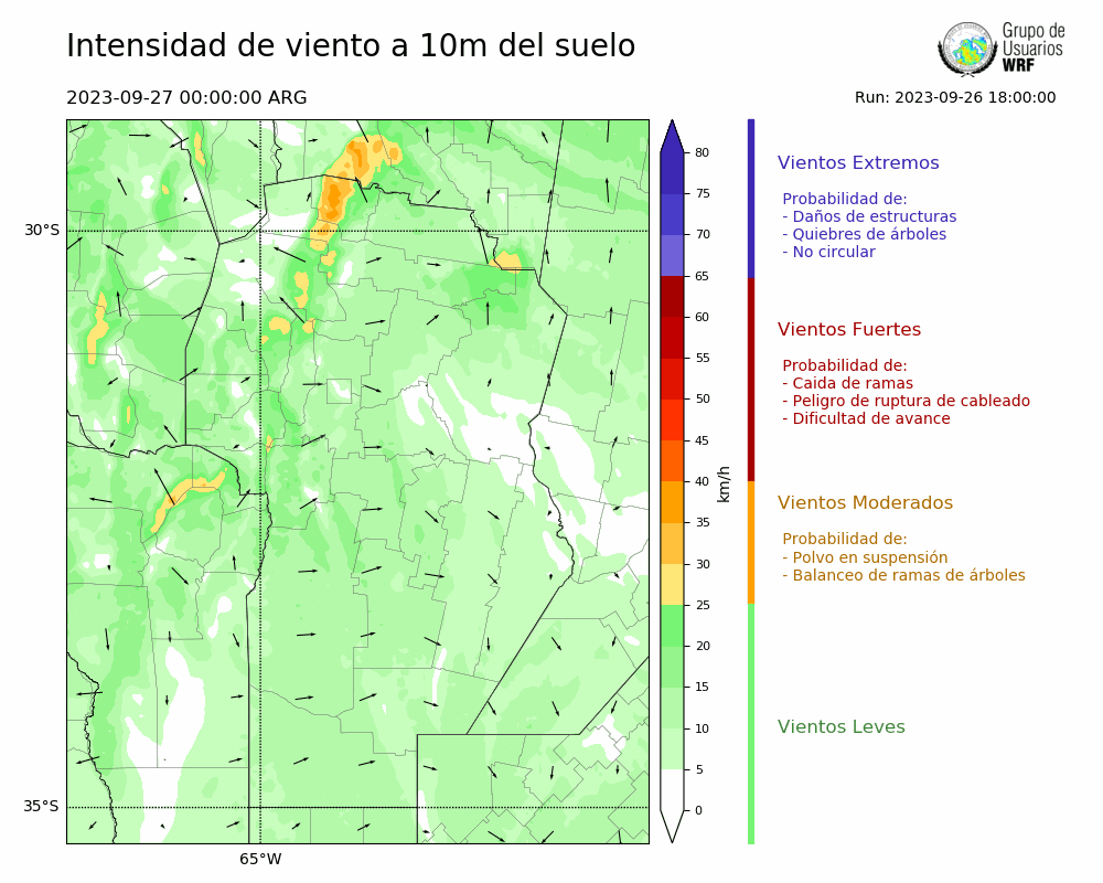 • Intensidad máxima: 6.80 km/h (27/09/2023 07hs.)