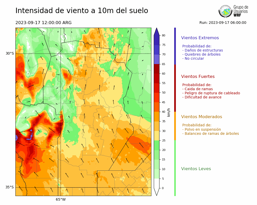 • Intensidad máxima: 30.54 km/h (17/09/2023 15hs.)