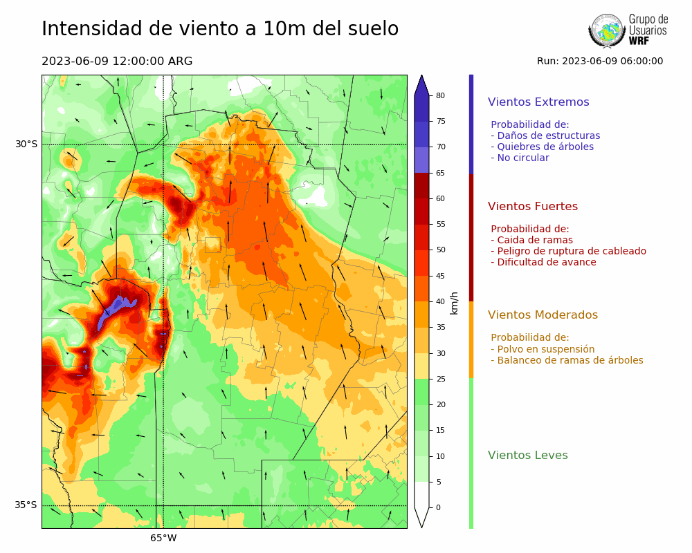 • Intensidad máxima: 12.90 km/h (10/06/2023 03hs.)
