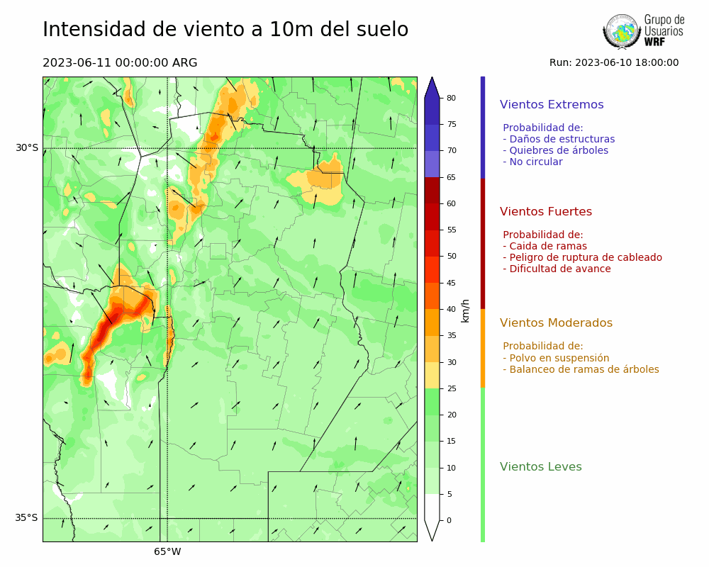 • Intensidad máxima: 16.20 km/h (11/06/2023 00hs.)