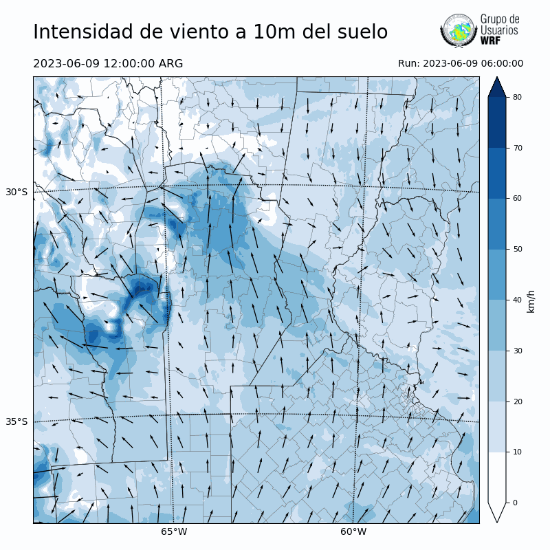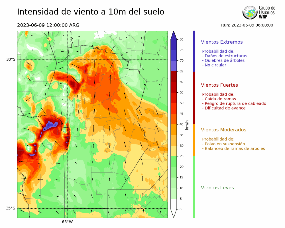 • Intensidad máxima: 12.85 km/h (10/06/2023 02hs.)