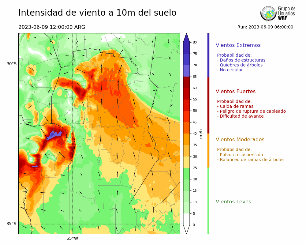 • Intensidad máxima: 12.97 km/h (10/06/2023 02hs.)