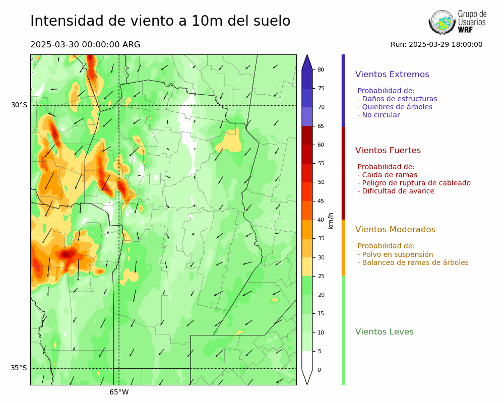• Intensidad máxima: 48.36 km/h (30/03/2025 02hs.)