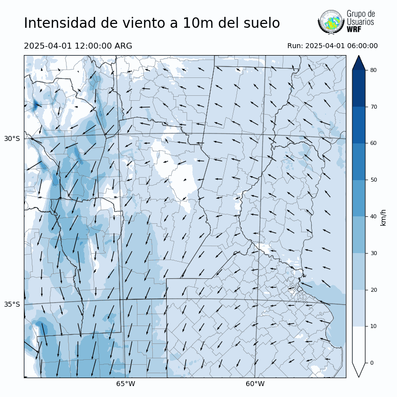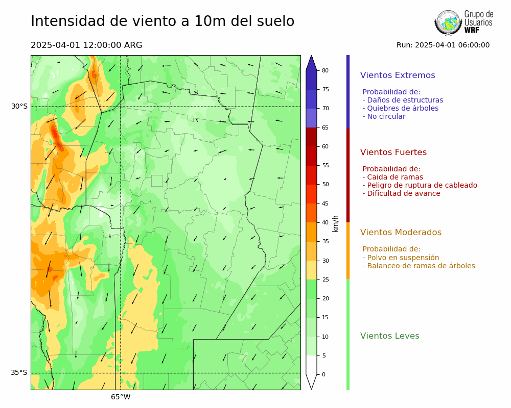 • Intensidad máxima: 12.98 km/h (03/04/2025 09hs.)