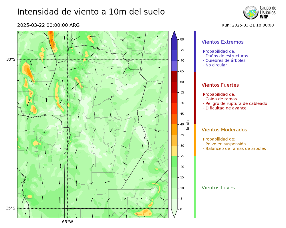 • Intensidad máxima: 8.77 km/h (22/03/2025 03hs.)