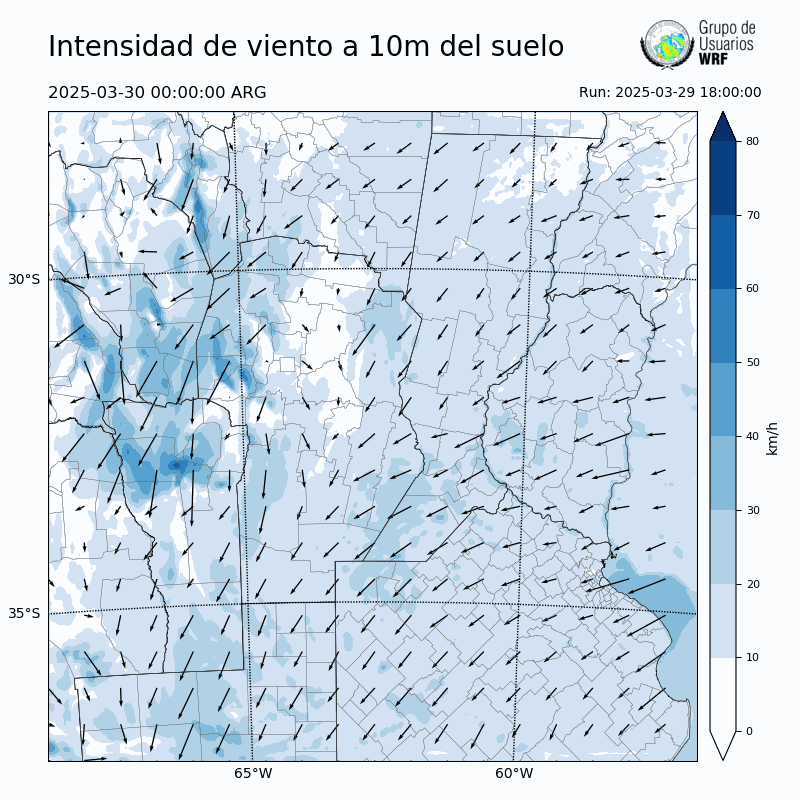 • Intensidad máxima: 45.78 km/h (30/03/2025 01hs.)