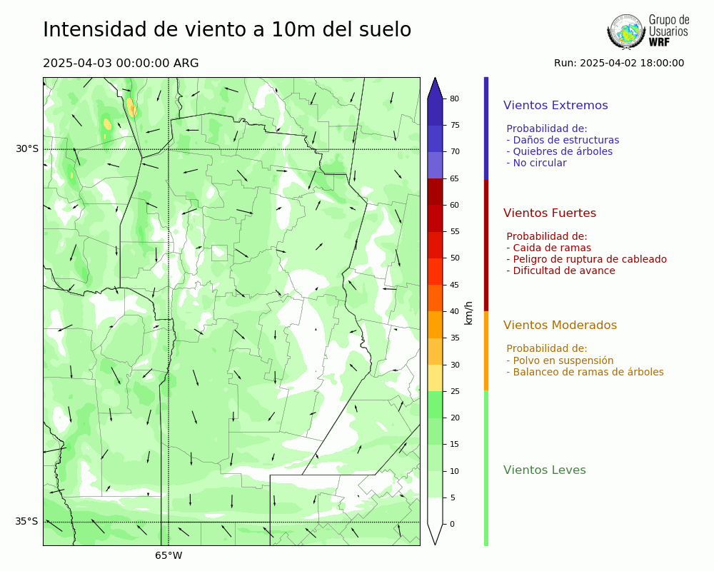 • Intensidad máxima: 11.96 km/h (03/04/2025 09hs.)