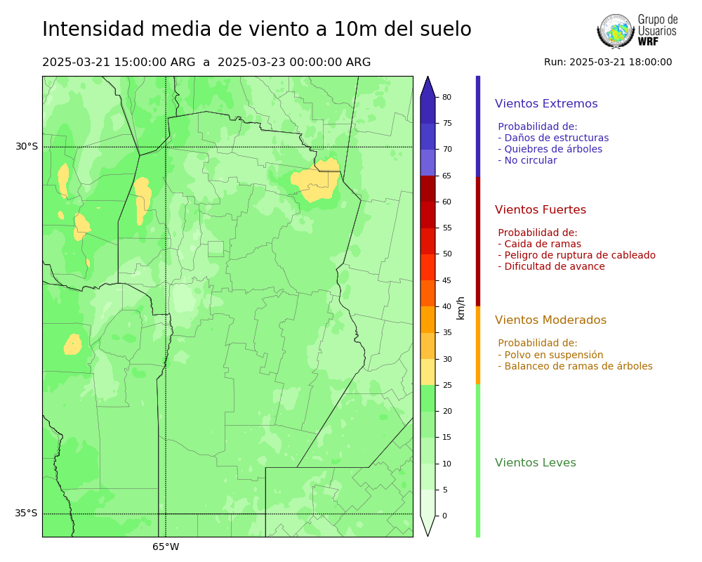 • Intensidad máxima: 11.65 km/h (22/03/2025 17hs.)