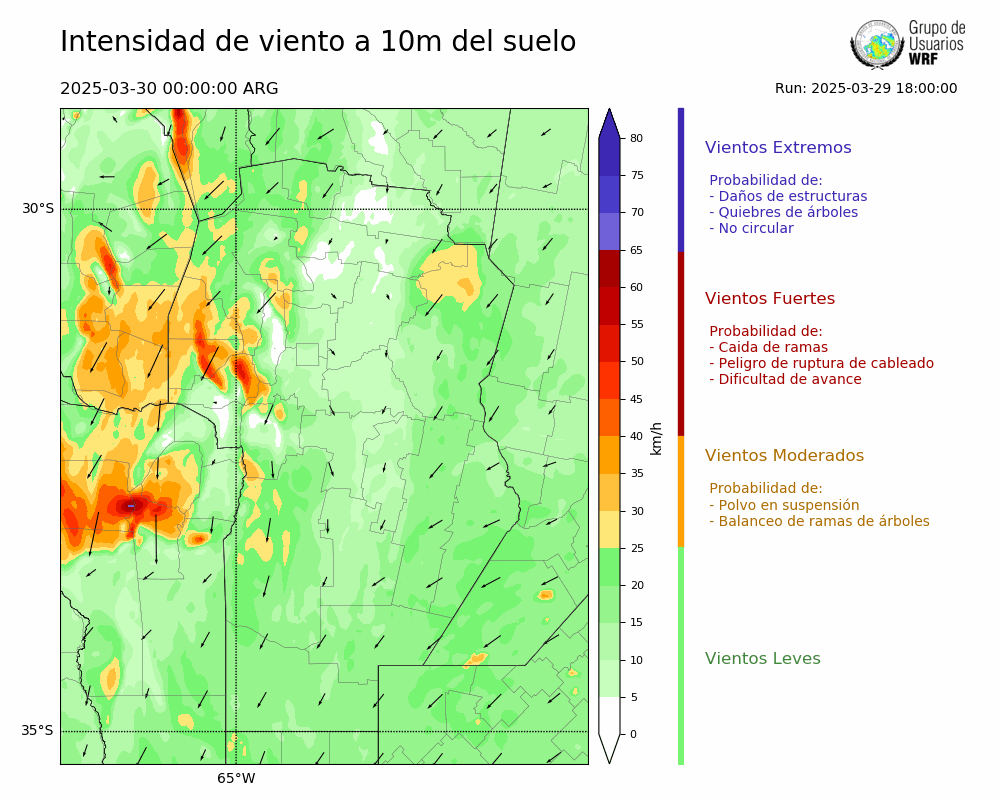 • Intensidad máxima: 30.96 km/h (30/03/2025 12hs.)