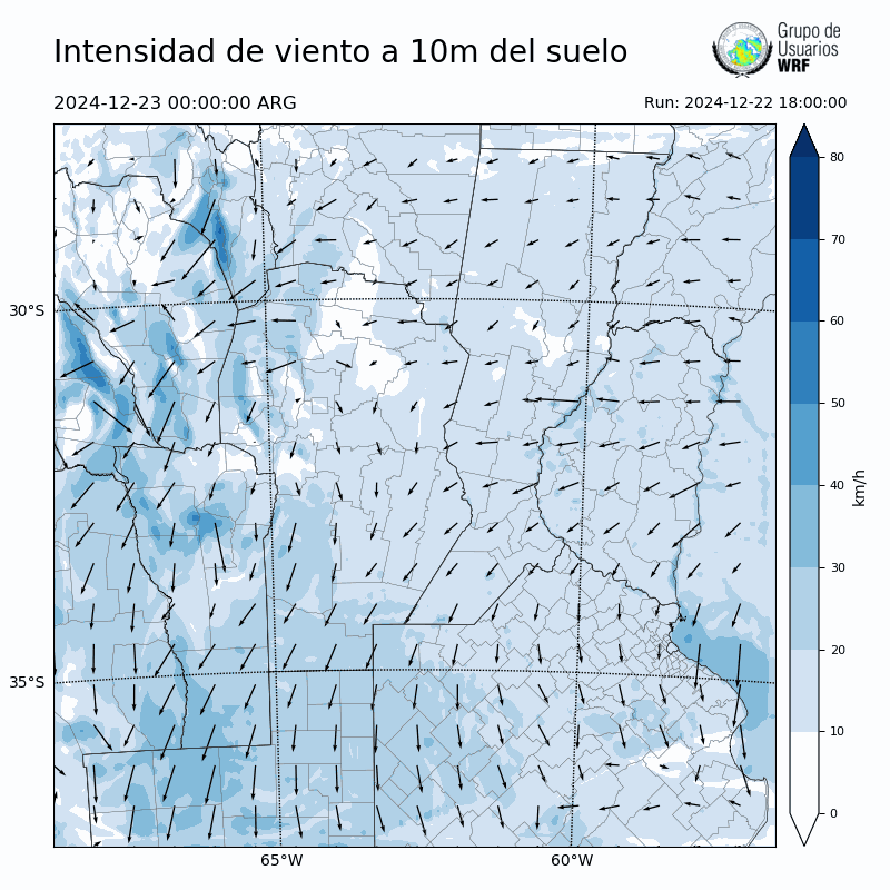 • Intensidad máxima: 20.80 km/h (23/12/2024 10hs.)