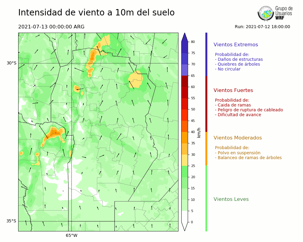• Intensidad máxima: 12.40 km/h (13/07/2021 11hs.)