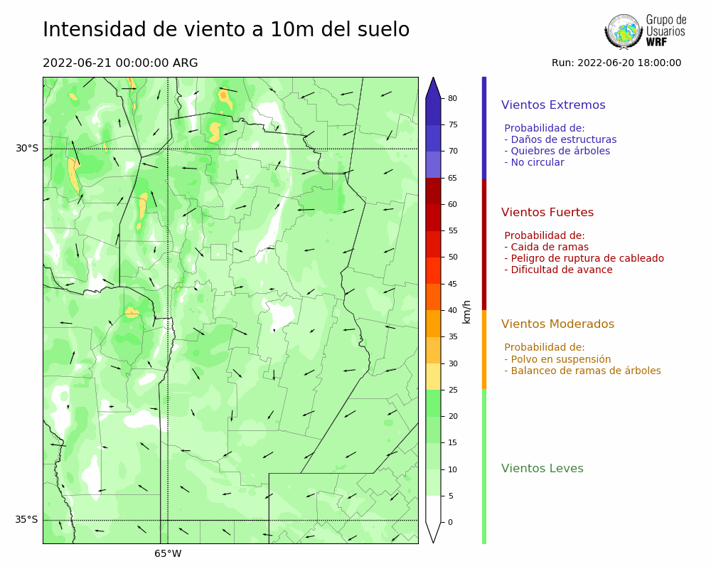 • Intensidad máxima: 6.91 km/h (21/06/2022 04hs.)