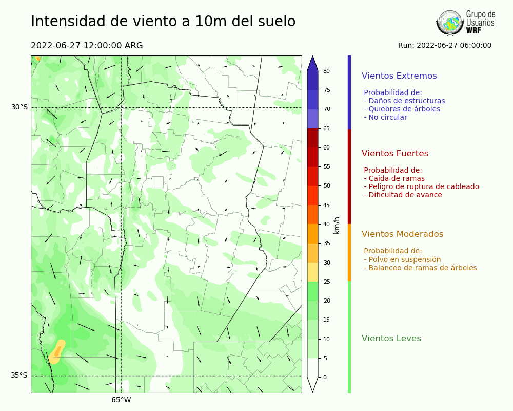 • Intensidad máxima: 7.69 km/h (27/06/2022 16hs.)