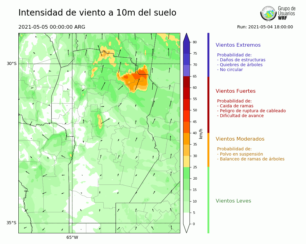 • Intensidad máxima: 16.33 km/h (07/05/2021 02hs.)