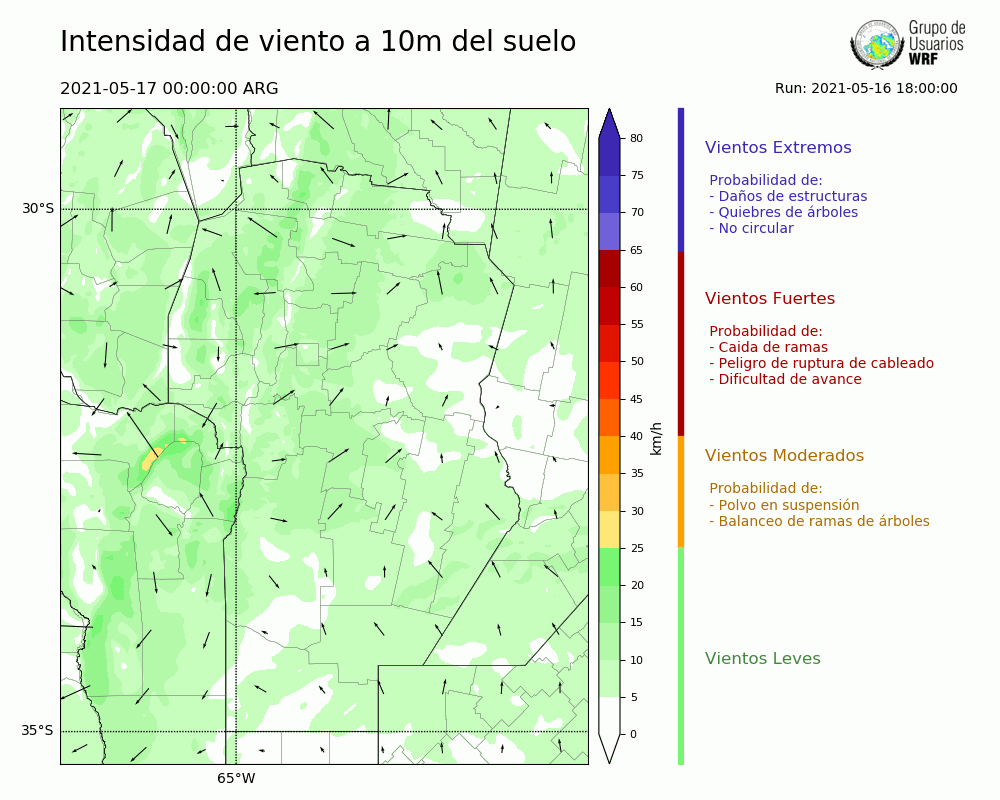 • Intensidad máxima: 14.09 km/h (17/05/2021 08hs.)