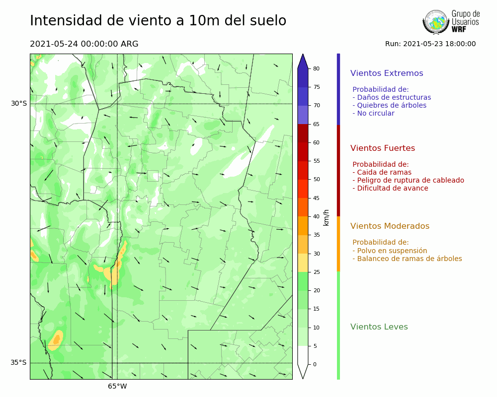 • Intensidad máxima: 32.55 km/h (24/05/2021 08hs.)