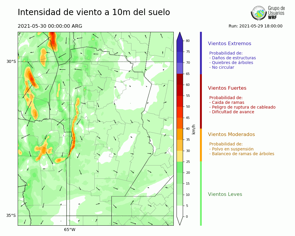 • Intensidad máxima: 30.88 km/h (30/05/2021 03hs.)