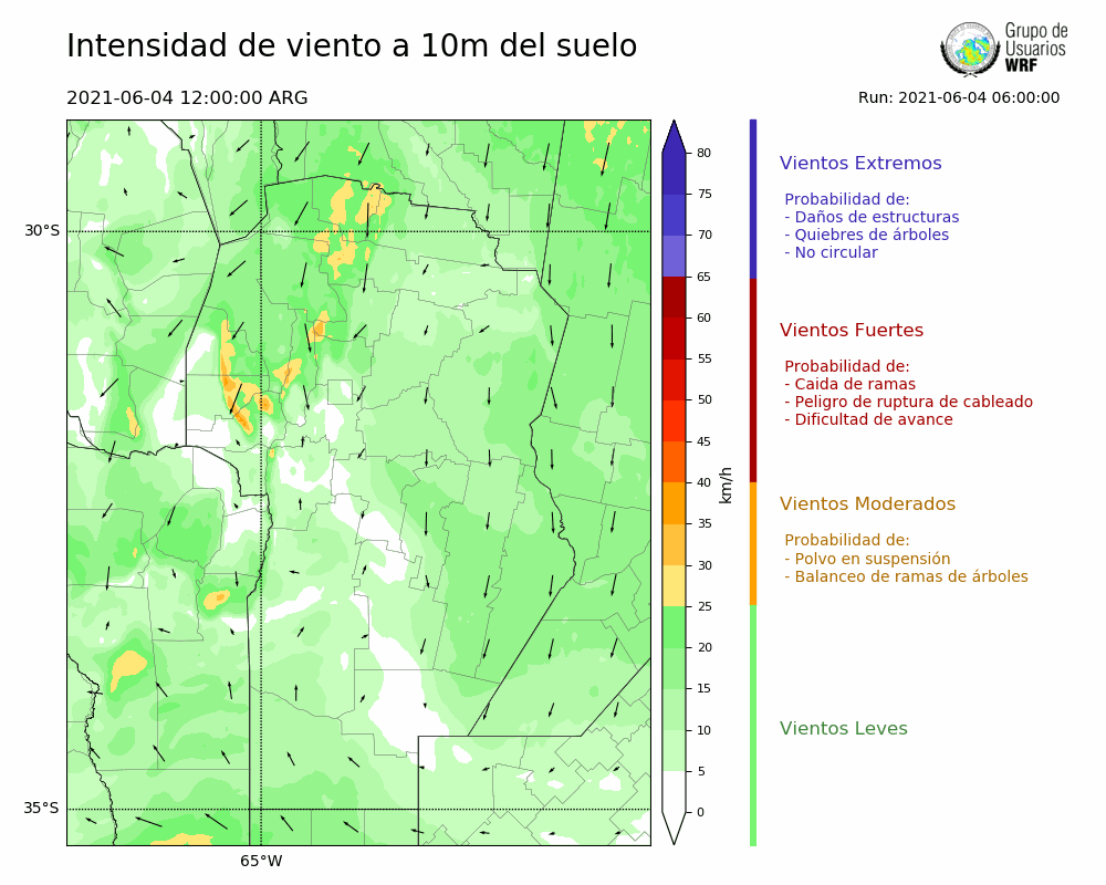 • Intensidad máxima: 19.21 km/h (04/06/2021 17hs.)