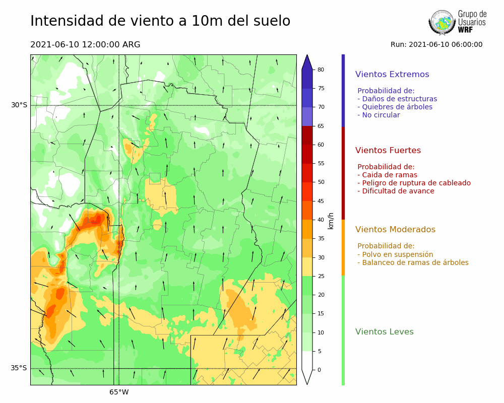 • Intensidad máxima: 12.36 km/h (12/06/2021 18hs.)