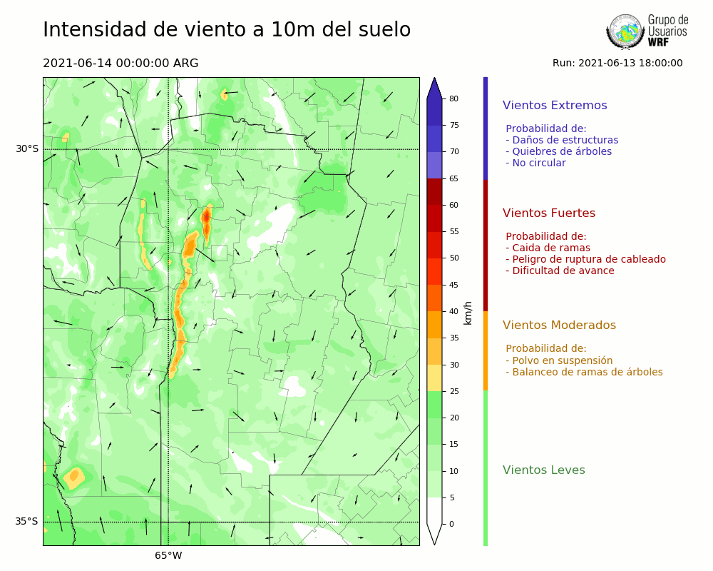 • Intensidad máxima: 42.92 km/h (14/06/2021 01hs.)
