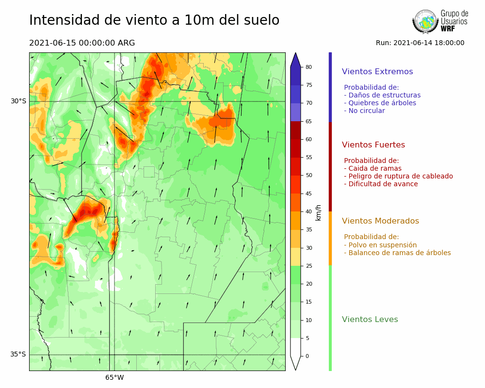 • Intensidad máxima: 8.86 km/h (17/06/2021 06hs.)