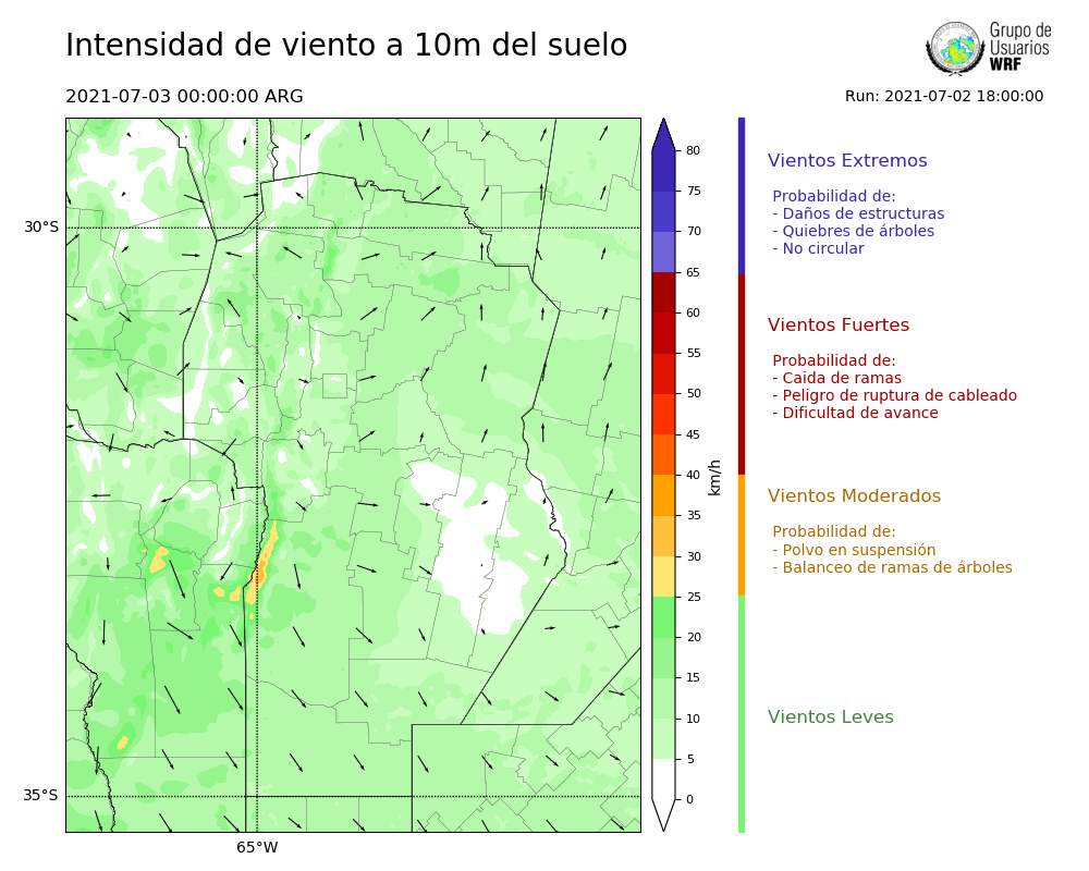 • Intensidad máxima: 20.90 km/h (03/07/2021 06hs.)