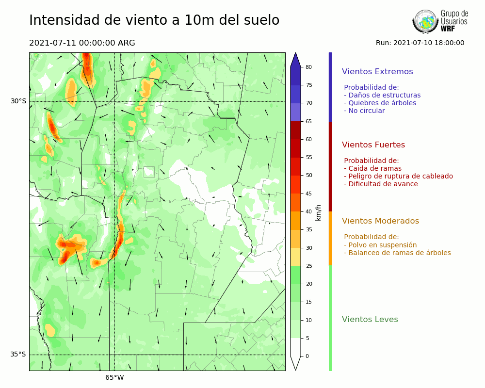 • Intensidad máxima: 22.51 km/h (11/07/2021 11hs.)