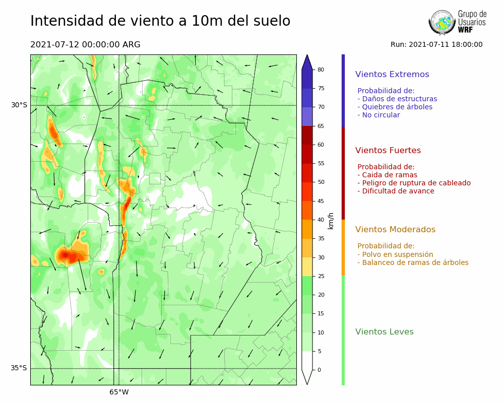 • Intensidad máxima: 18.80 km/h (12/07/2021 00hs.)