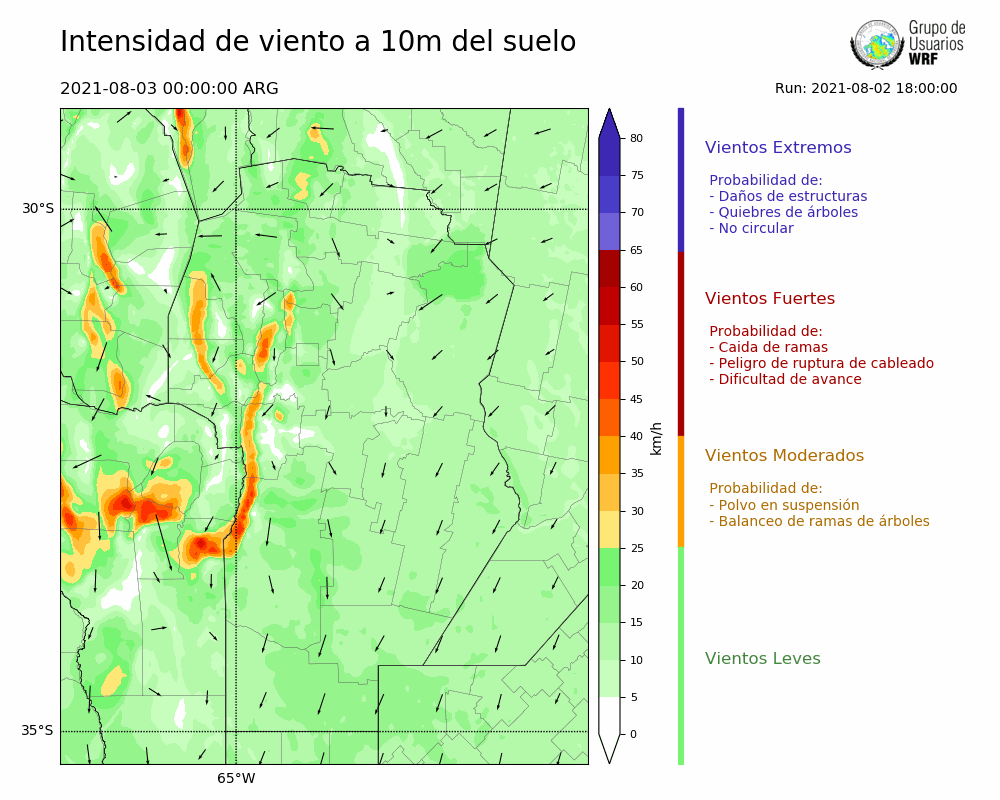 • Intensidad máxima: 17.60 km/h (05/08/2021 02hs.)