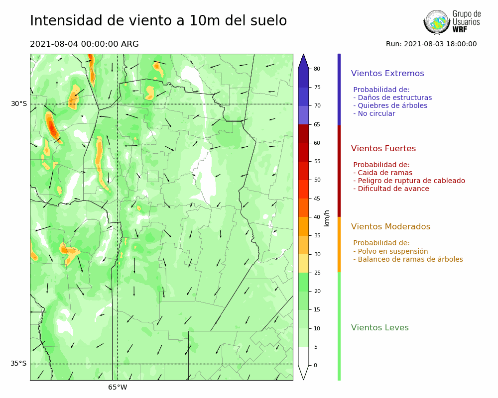 • Intensidad máxima: 26.85 km/h (04/08/2021 05hs.)