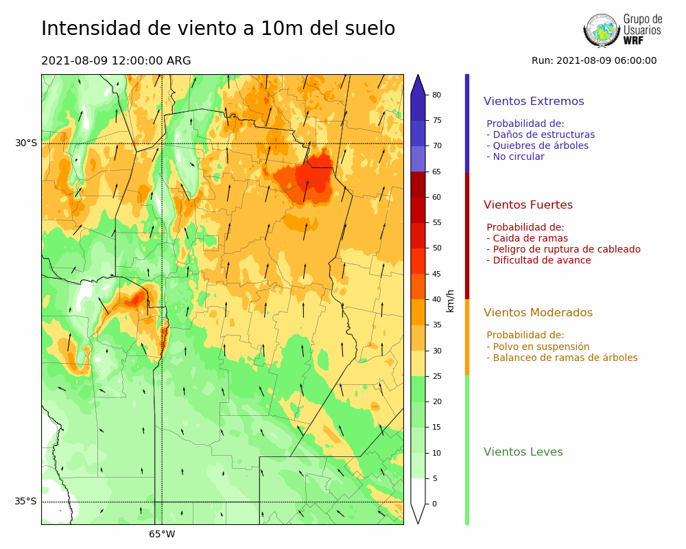 • Intensidad máxima: 9.50 km/h (11/08/2021 05hs.)