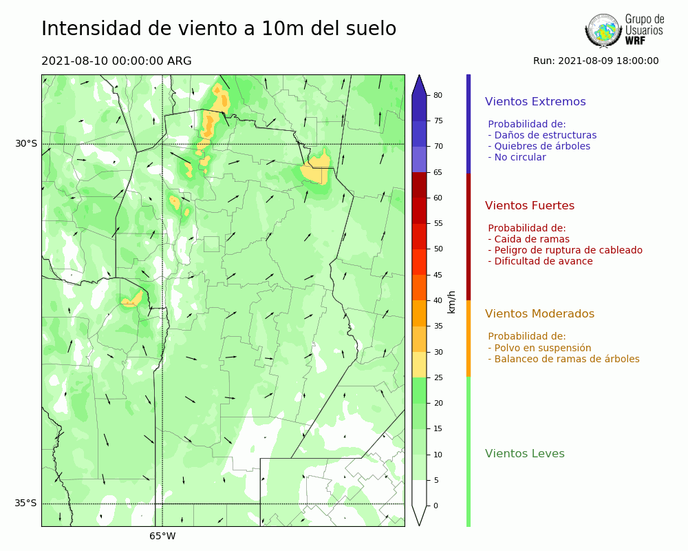 • Intensidad máxima: 14.85 km/h (11/08/2021 05hs.)