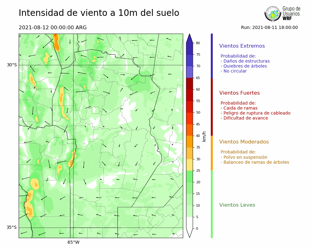 • Intensidad máxima: 17.76 km/h (12/08/2021 11hs.)