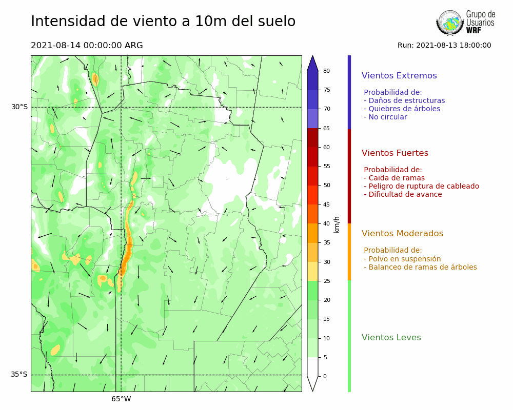 • Intensidad máxima: 33.22 km/h (14/08/2021 05hs.)